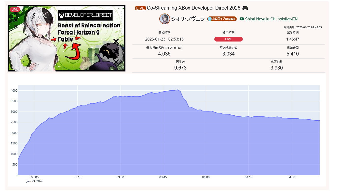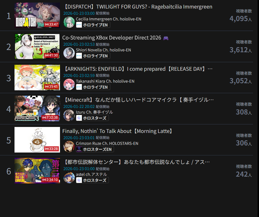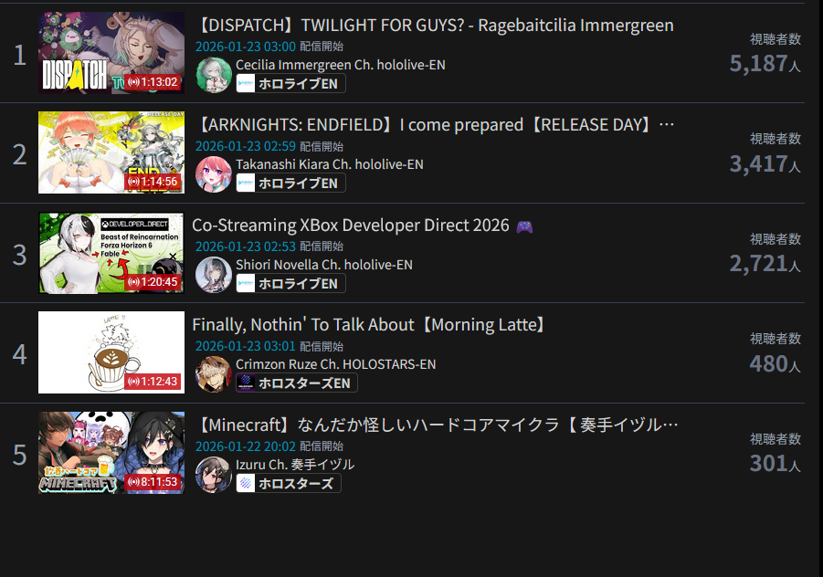 This is a terrible timeslot. Like, I get its overlap and its kiara and shiori but still. CC also isnt doing great but shes only fine on an empty slot anyway.