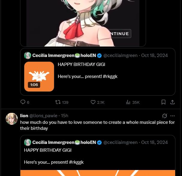 >>108817654Ame did it for Cover not for her love of homos, sad trying to make them a thing was pretty much her last big project as a hololive member, she had that news show later but you might argue it was also used for homoshilling