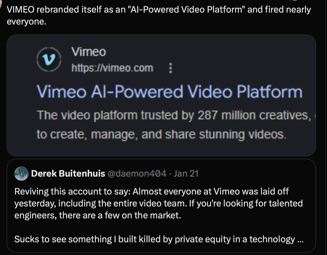 >>108813523Good. I guess at least they are still above twitterfags.Not sure why you were acting like one, though