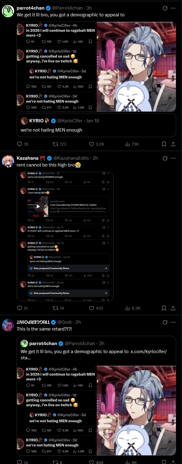>>108813854kek these faggots go around calling anyone they don't like parasocial weirdos but will still post these retarded fantasies like it's not the same shit they complain about