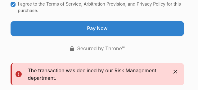 >>108823272Just had someone do a small test donation and it went through fine on their end. Throne is really finnicky I’m so sorry this happened.