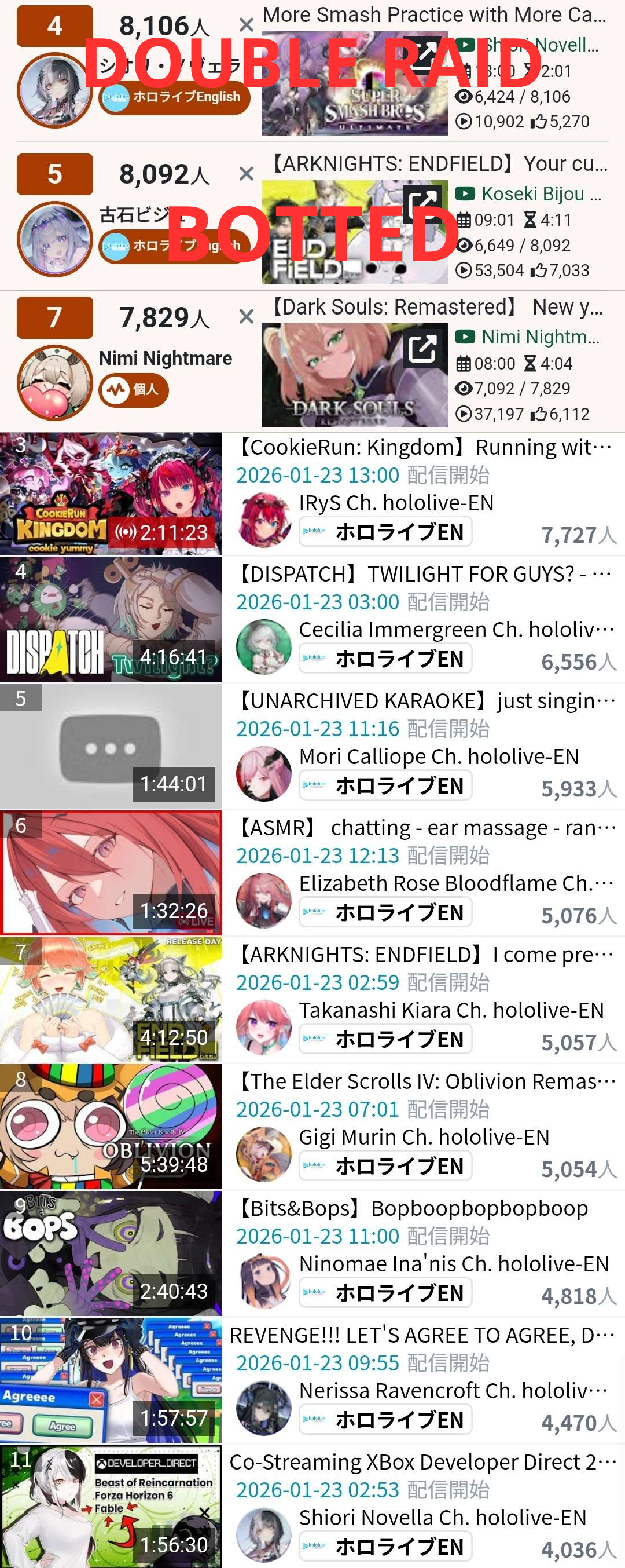 >Thanks for the raid Shiori>Hello NovelightsIRyS...?