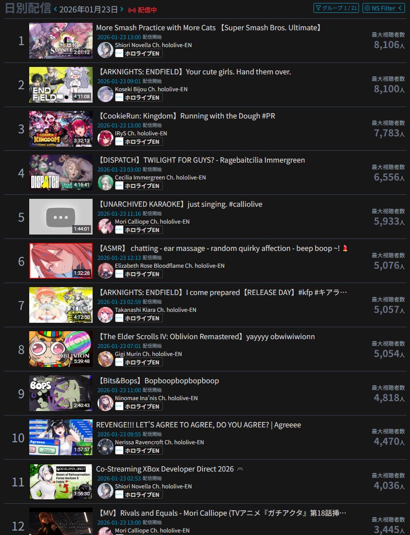 >>108835461We need our cuckling liveposters to come back but they're embarrassed by Nimi's shit numbers and constant losses to Shiori