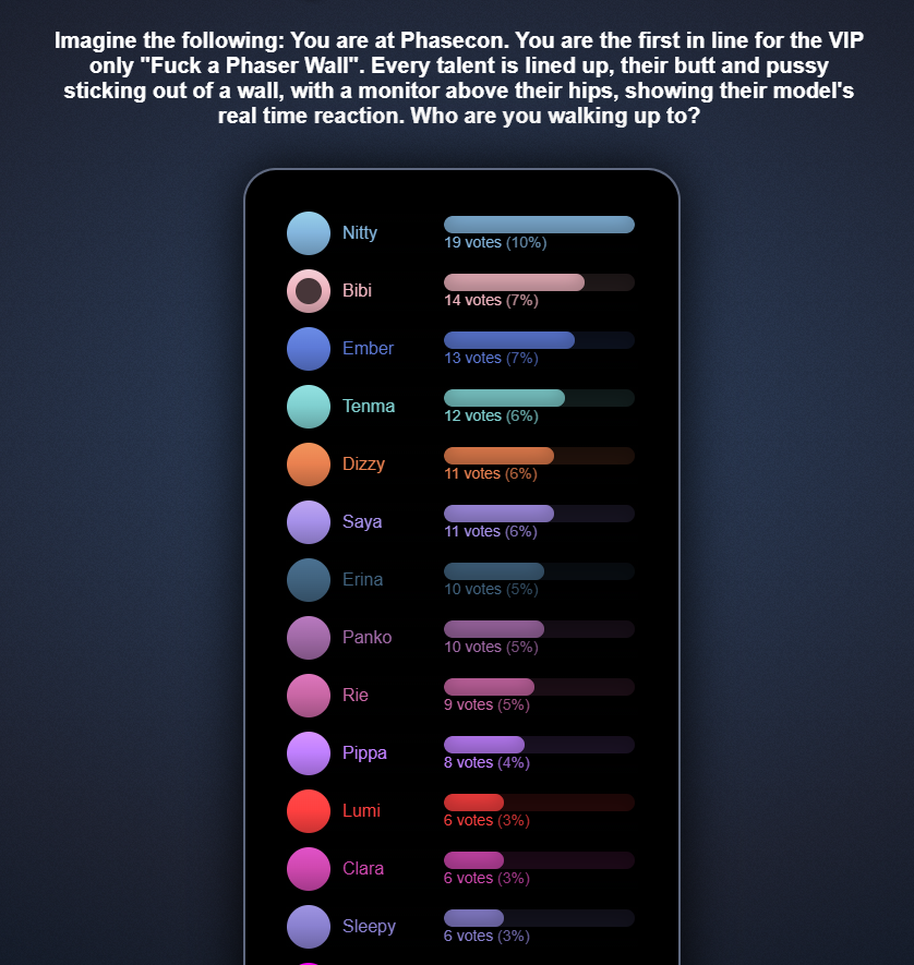 >>108836149>>108836705correct, that was the bottom of the wall poll the last time it was posted here before it found its way onto discord or xwitter or whereverin case you needed any more evidence that ohmies are an invasive species