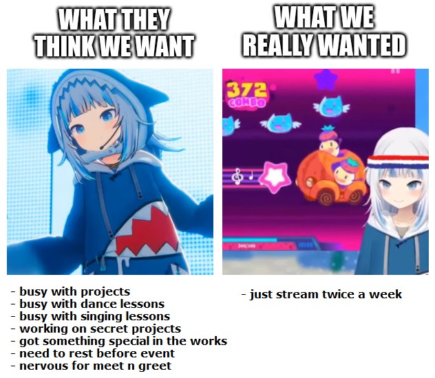 >yesterday >"Saba will you make any music?" >Yeah probably eventually. I just haven't really felt, I'm pretty satisfied with karaokes personally, I haven't really felt the urge to make a ton of original music. https://youtu.be/kIsRYLvylXk?t=4435>5 months ago >"I'm making more music, isn't that exciting guys? Who knows maybe one day I'll have enough to make an EP!" https://youtu.be/h3jBOcBn_tU?t=331She's been lying about her projects for 5 years now. How do kanikeks still fall for it?