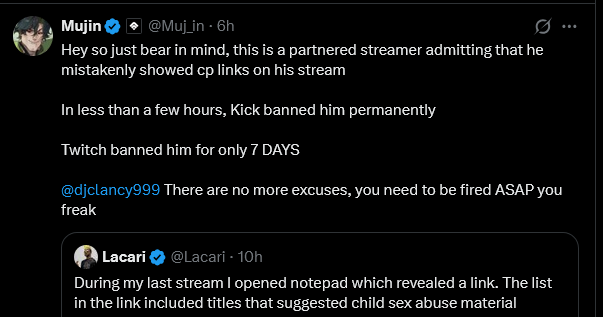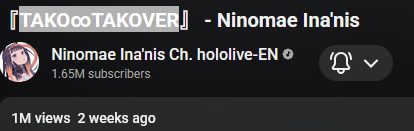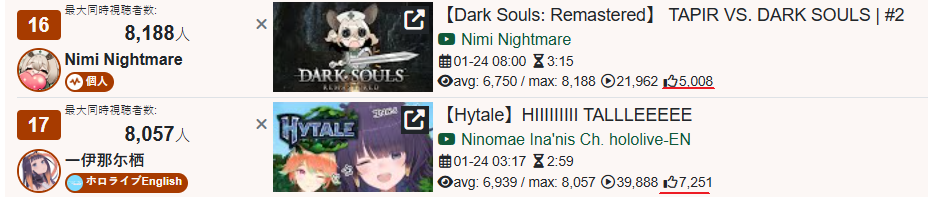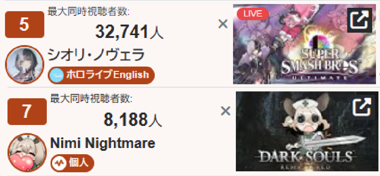 >>108861842I've already stated /here/ before that they've been informed of their bigger streams and projects being shadow/search banned on YT. Even during periods without culls they are netting view to like ratios that show their channel is personally affected. This is also visible when they do polls in chat that YT will actively cull hundreds of votes from them every few seconds.Now obviously with box streams there's going to be churn/pov switching but even when they were actually playing in the competition earlier they only gained a few hundred viewers, despite having higher likes than almost every EN and a lot of the JPs that started at the same time that had around 3-5k CCV.