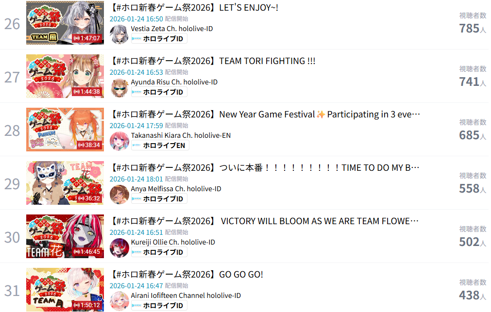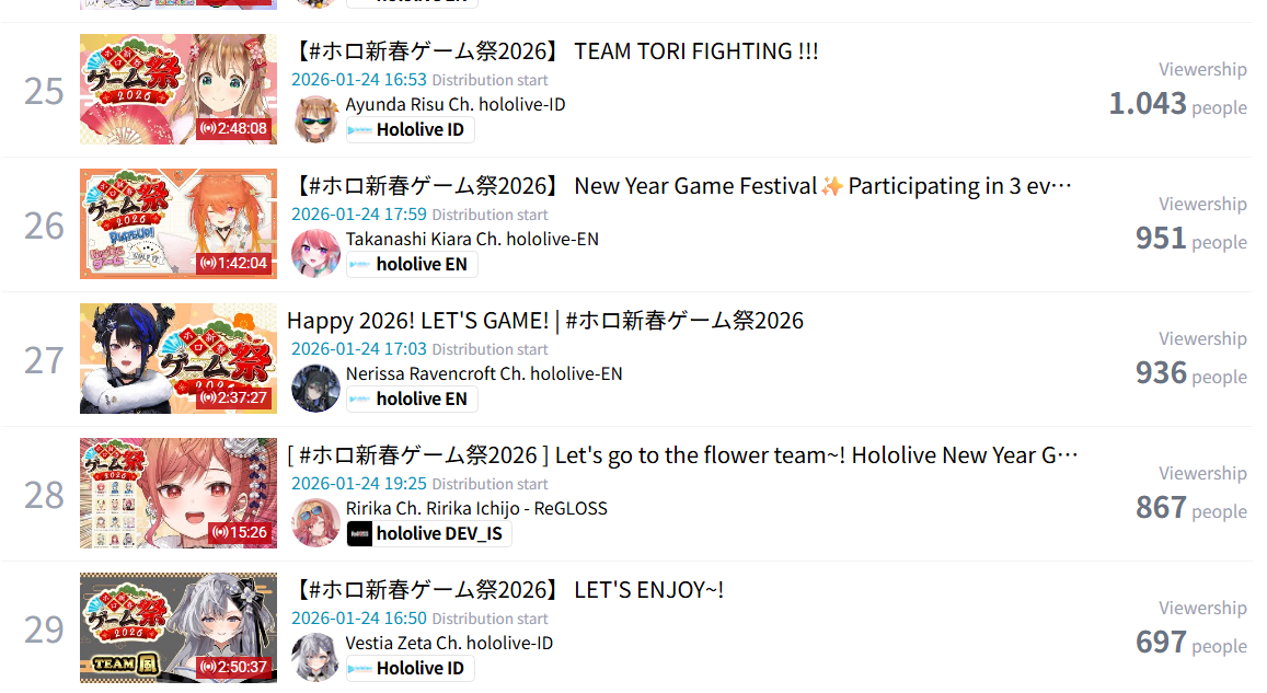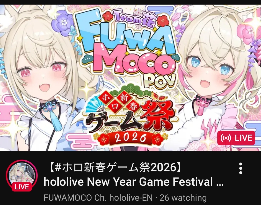 >>108861969You can state it over and over but they aren't shadowbanned. We've seen what shadowbanning looks like and that's not it.Just search the hash tag #ホロ新春ゲーム祭2026 on YoutubeThey show up 17th out of 33 streams. That is not a shadowbanWhen Mori was actually shadowbanned, we saw her sitting with 3k views showing up in the search below dozens of 0-2 view streams. 0-2 view not 0-2view, literal 0, 1, and 2 total viewership streams.You can read the words we use but are too new to know how we use them
