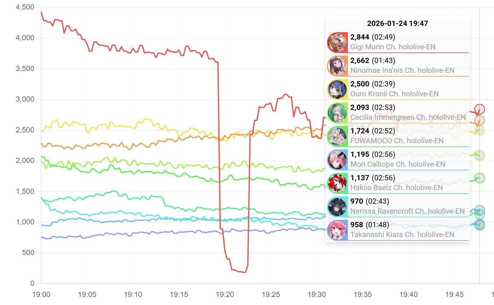 >>108861786There are multiple ENs doing worse and the JPs are probably watching the JP streams live right now They also crashed earlier