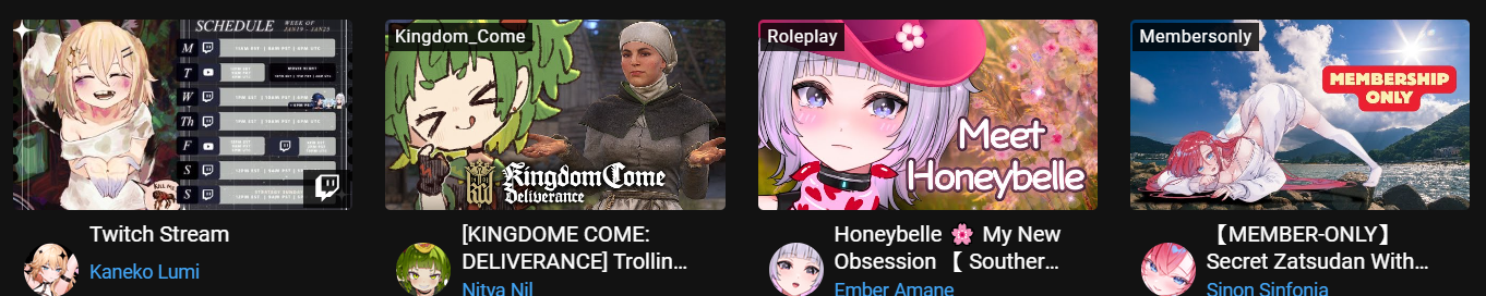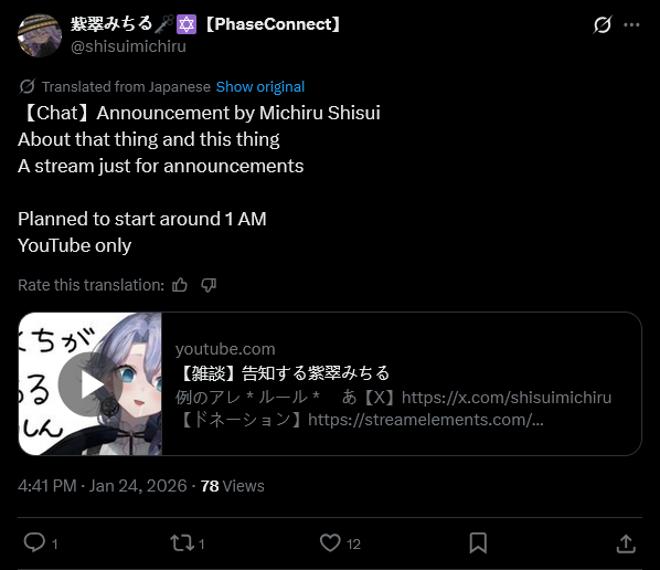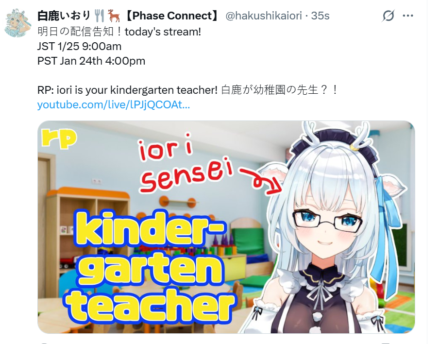 ▼ Phase Connect LinksOfficial Website: https://phase-connect.comOfficial Schedule: https://schedule.phase-connect.comOfficial Twitter: https://x.com/PhaseConnect | https://x.com/PhaseConnectJPOfficial Character References: https://rentry.org/pcgreferencesOfficial Twitch Archive Channels: https://rentry.org/pcgtwitcharchiveUnofficial Phase Connect Archives: https://rentry.org/pcgunofficialarchive––––––––––––––––––––––––––––––––––◆【Lia】https://x.com/rinkouashelia | https://youtube.com/RinkouAshelia | https://twitch.tv/asheliarinkou◆【Utatane Nasa】転寝ナサ (JP) https://x.com/UtataneNasa | https://youtube.com/UtataneNasa | https://twitch.tv/utatanenasa◆【Hakushika Iori】白鹿いおり (JP + EN) https://x.com/hakushikaiori | https://youtube.com/HakushikaIori | https://twitch.tv/iorihakushika◆【Fujikura Uruka】https://x.com/fujikurauruka | https://youtube.com/FujikuraUruka | https://twitch.tv/fujikurauruka◆【Shisui Michiru】紫翠みちる (JP) https://x.com/shisuimichiru | https://youtube.com/ShisuiMichiru | https://twitch.tv/michiru_shisui◆【Tenma Maemi】https://x.com/tenmamaemi | https://youtube.com/TenmaMaemi | https://twitch.tv/tenma◆【Pipkin Pippa】https://x.com/pipkinpippa | https://youtube.com/PipkinPippa | https://twitch.tv/pippa––––––––––––––––––––––––––––––––––◆【Kaneko Lumi】https://x.com/kaneko_lumi | https://youtube.com/KanekoLumi | https://twitch.tv/kanekolumi◆【Fuura Yuri】[Terminated] https://x.com/AmarisYuri | Archive: https://youtube.com/@TheNationalFuuraYuriArchive◆【Dizzy Dokuro】https://x.com/dizzydokuro | https://youtube.com/@dizzydokuro | https://twitch.tv/dizzydokuro◆【Jelly Hoshiumi】https://x.com/jellyhoshiumi | https://youtube.com/@jellyhoshiumi | https://twitch.tv/jellyhoshiumi◆【Ember Amane】https://x.com/emberamane | https://youtube.com/@EmberAmane | https://twitch.tv/emberamane◆【Clio Aite】https://x.com/ClioAite | https://youtube.com/@ClioAite | https://twitch.tv/clioaite◆【MariMari_en】https://x.com/MARIMARI_EN | https://youtube.com/@MARIMARI_EN | https://twitch.tv/marimari_en◆【Eepy Sleepy】https://x.com/EepySleepyCh | https://youtube.com/@EepySleepyCh | https://twitch.tv/EepySleepy––––––––––––––––––––––––––––––––––◆【Remilia Nephys】https://x.com/Remilia_Nephys | https://youtube.com/RemiliaNephys | https://twitch.tv/remilianephys◆【Chisaka Airi】https://x.com/ChisakaAiri | https://youtube.com/ChisakaAiri | https://twitch.tv/chisakaairi◆【Amanogawa Shiina】https://x.com/AmanogawaShiina | https://youtube.com/AmanogawaShiina | https://twitch.tv/amanogawashiina◆【Himemiya Rie】https://x.com/HimemiyaRie | https://youtube.com/HimemiyaRie | https://twitch.tv/himemiyarie◆【Erina Makina】https://x.com/ErinaMakina | https://youtube.com/ErinaMakina | https://twitch.tv/erinamakina◆【Komachi Panko】https://x.com/komachipanko | https://youtube.com/KomachiPanko | https://twitch.tv/komachipanko––––––––––––––––––––––––––––––––––◆【Runie Ruse】https://x.com/RunieRuse | https://youtube.com/@RunieRuse | https://twitch.tv/RunieRuse◆【Eimi Isami】https://x.com/eimiisami | https://youtube.com/@eimiisami | https://twitch.tv/eimiisami◆【Muu Muyu】https://x.com/Muu_Muyu | https://youtube.com/@MuuMuyu | https://twitch.tv/MuuMuyu◆【Hikanari Hina】https://x.com/HikanariHina | https://youtube.com/@HikanariHina | https://twitch.tv/HikanariHina◆【Saya Sairroxs】[Hort] https://x.com/sayasairroxs | https://youtube.com/@sayasairroxs | https://twitch.tv/sayasairroxs––––––––––––––––––––––––––––––––––◆【Kannagi Loki】巫ロキ (JP) https://x.com/kannagiloki | https://youtube.com/@kannagiloki ◆【Kokoromo Memory】恋衣めもり (JP) https://x.com/kokoromomemory | https://youtube.com/@kokoromomemory_ | https://twitch.tv/kokoromomemory◆【Gram Pico】倉夢ぴこ (JP) https://x.com/grampico_ | https://youtube.com/@grampico | https://twitch.tv/grampico◆【Ayase Yuu】絢世ユウ (JP) https://x.com/ayaseyuuu | https://youtube.com/@ayaseyuu | https://twitch.tv/ayaseyuu_◆【Kaminari Clara】歌美鳴クララ (EN + JP) https://x.com/kaminariclara_ | https://youtube.com/@kaminariclara | https://twitch.tv/kaminariclara––––––––––––––––––––––––––––––––––◆【Malice Evermore】https://x.com/MaliceEvermore | https://youtube.com/@maliceevermore | https://twitch.tv/maliceevermore◆【Nitya Nil】https://x.com/Nitya_Nil | https://youtube.com/@Nitya_Nil | https://twitch.tv/nitya_nil◆【Wilhelmina Frost】https://x.com/wilhelminafr0st | https://youtube.com/@wilhelminafrost | https://twitch.tv/wilhelminafrost◆【Bibi Biscuit】https://x.com/BibiBiscuitCh | https://youtube.com/@bibibiscuitch | https://twitch.tv/bibibiscuitch◆【Anya Nyabyss】https://x.com/AnyaNyabyss | https://youtube.com/@AnyaNyabyss | https://twitch.tv/anyanyabyss◆【Sinon Sinfonia】https://x.com/SinonSinfonia | https://youtube.com/@SinonSinfonia | https://twitch.tv/sinonsinfoniaPrevious Thread: >>108858339