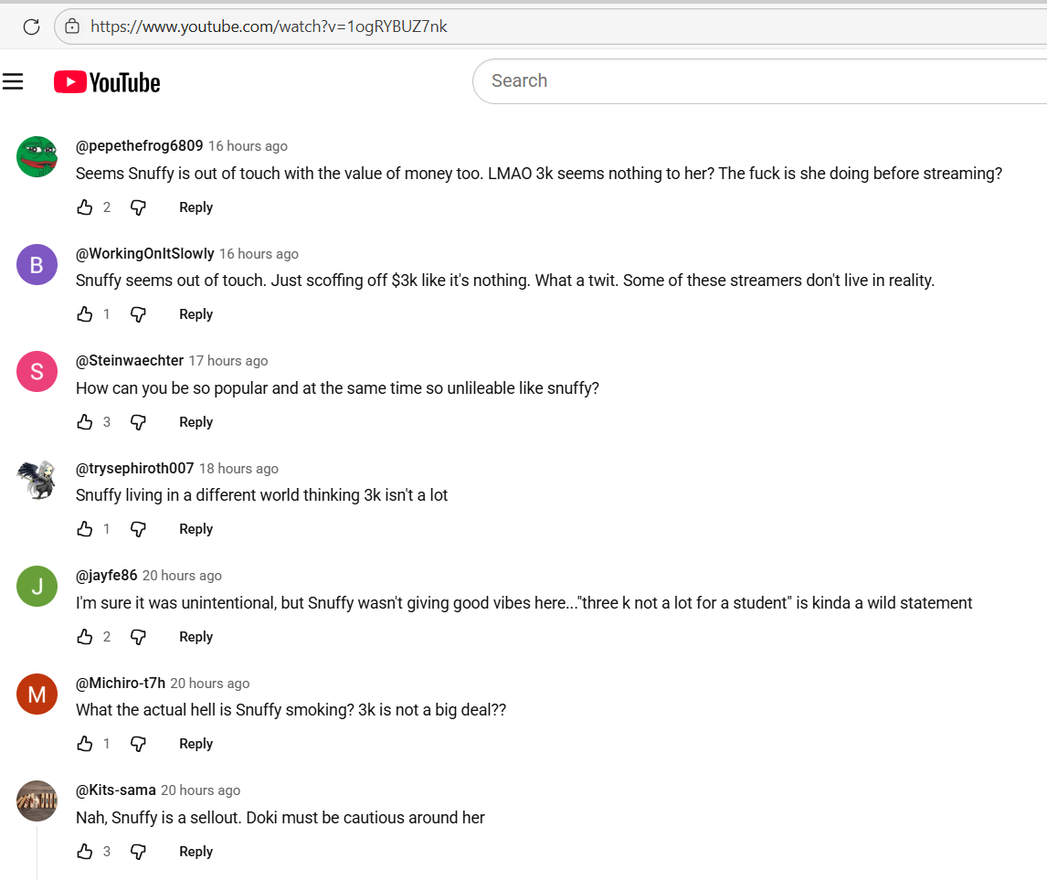 >>108871139They're right in that 3k is not an insignificant amount of money but why the fuck are they so aggressive towards Snuffy? Just a nice dumb raccoon.