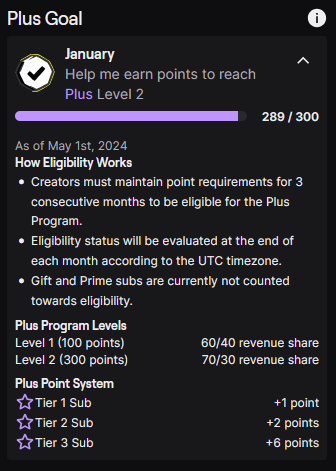 but also once she actually does qualify for partner plus 2 she'll get more out of gift subs than basic partner which she has now. then again even if she qualified right now, she'd need to maintain her sub points for 3 months before she gets the benefits so it's all whatever.