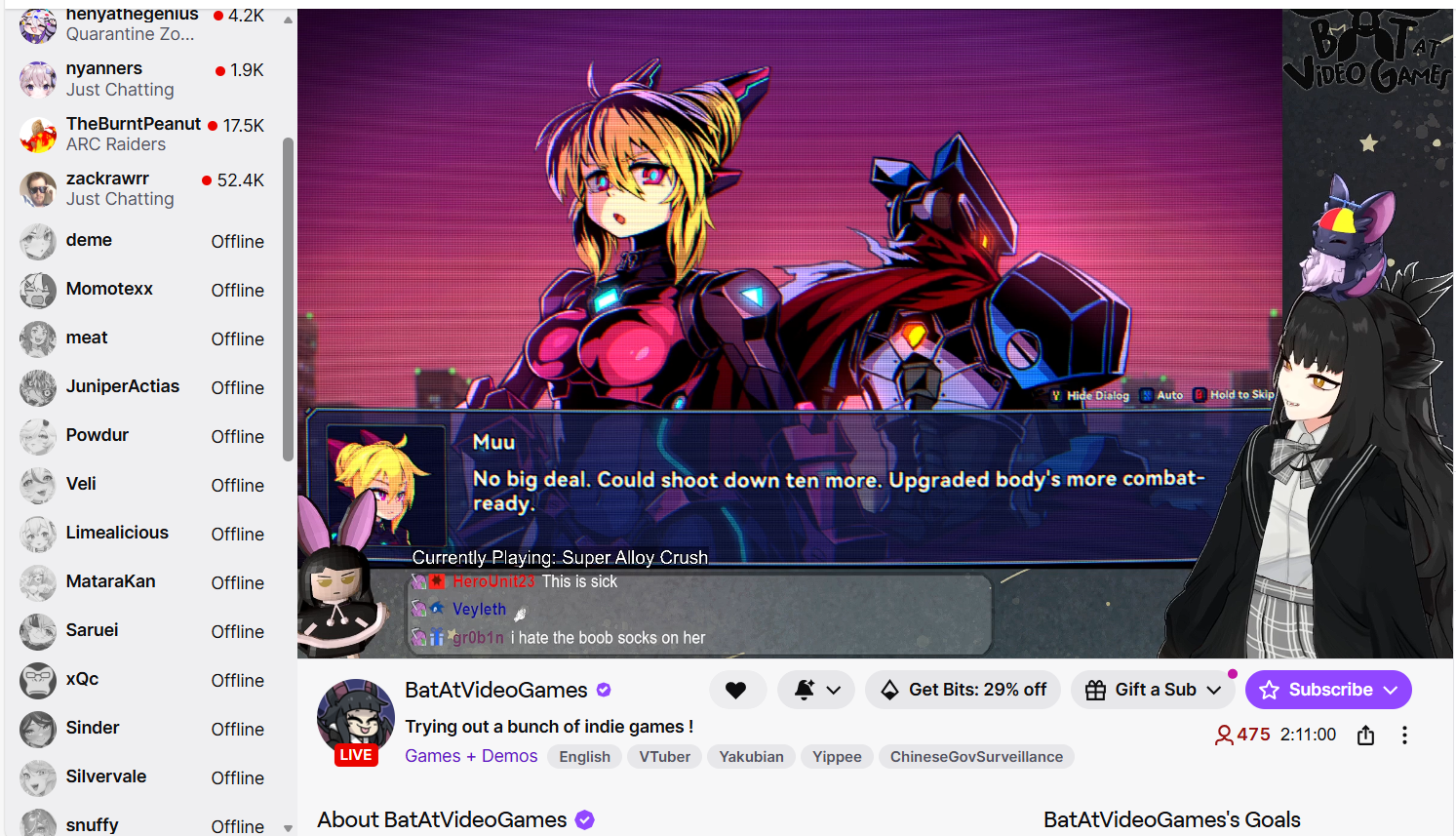 Large indie vtubers have more net fans, but they are outnumbered by 2views by the thousands. This is a thread for the VIP, regardless of what language they stream on.