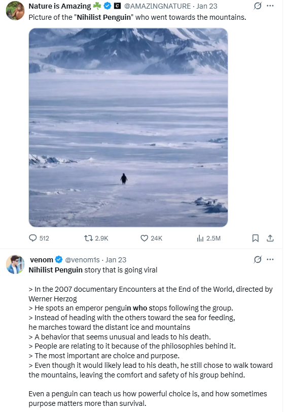 >>108886289first of all penguins need to stay as a group to share warmth or they'll freeze, second they are swimmers who eat fish and can't catch anything on foot, third only the coastal areas ever thaw out seasonally to support life as this is antarctica and not just a generic cold place