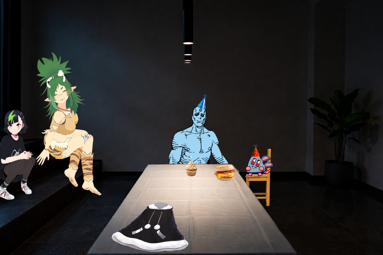 >>108885750Grimmi dropped him off so and told him to make some friends but he doesn't know anyone and his feet hurt so he's just going to stand quietly in the corner until she comes back
