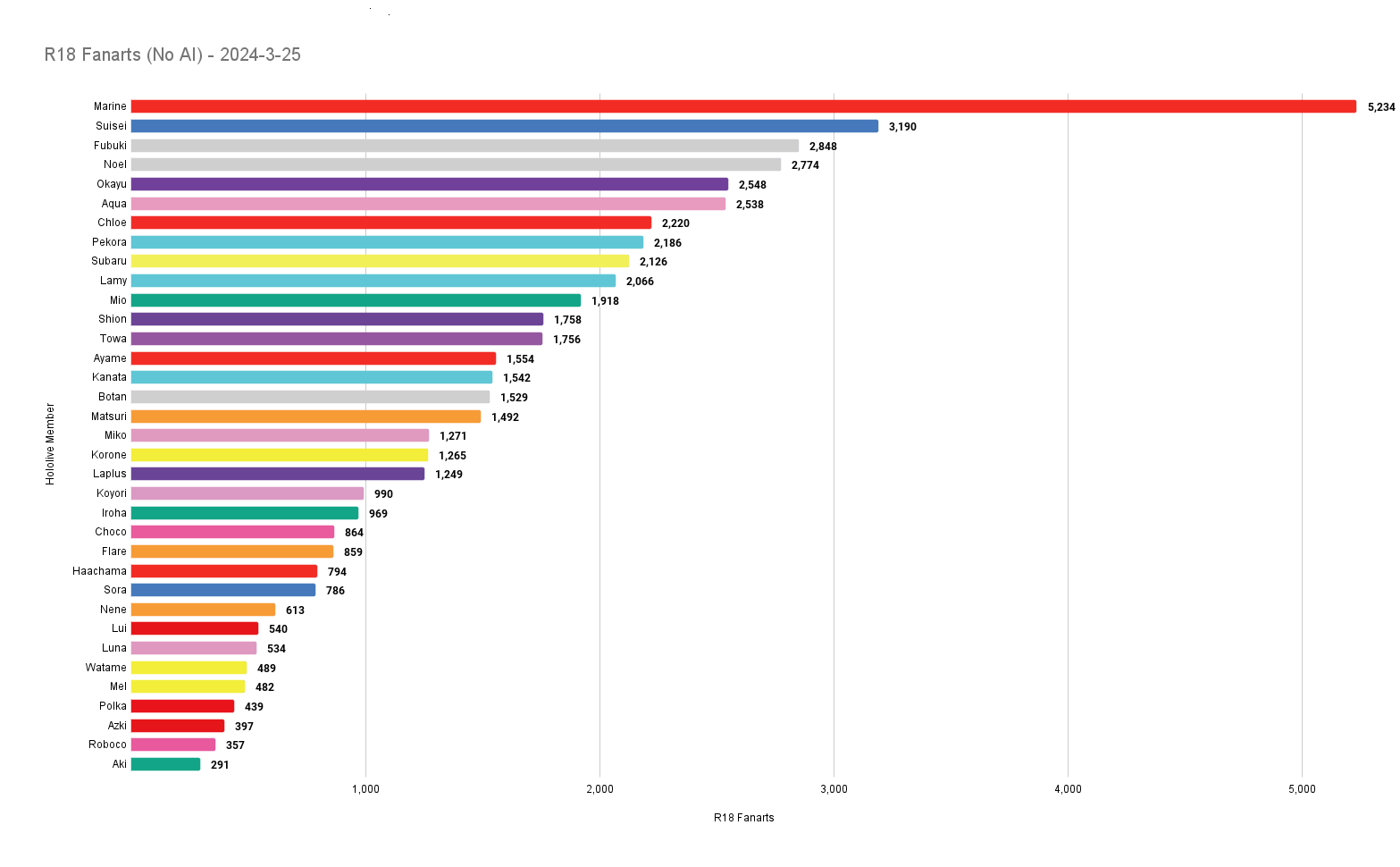 >>108889024gura's only at 3,439 so no, keep in mind marines at 7,024 as of this post with suisei being at 6,284. interestingly suisei does have more if ai stuff is included with 18,307 to marines 15,443