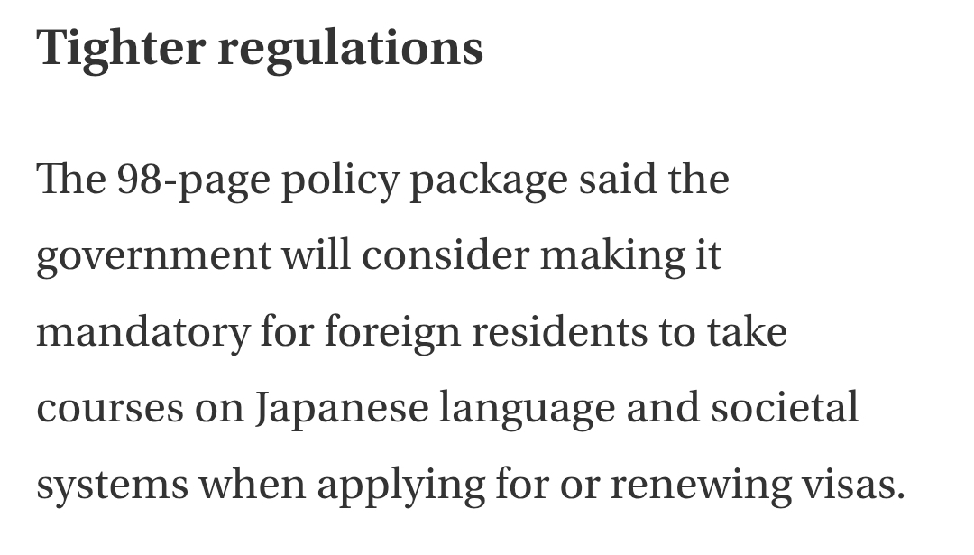New japan visa policy is to require foreign residents to take language course and get good at Japanese in order to renew their visa