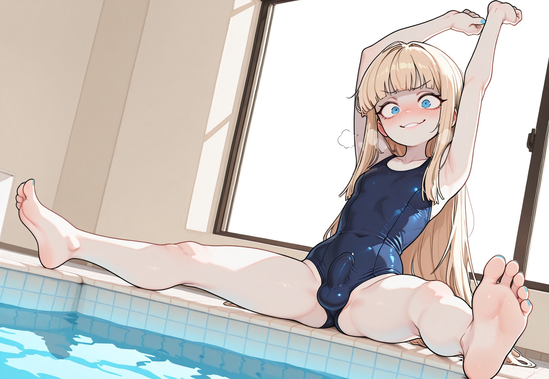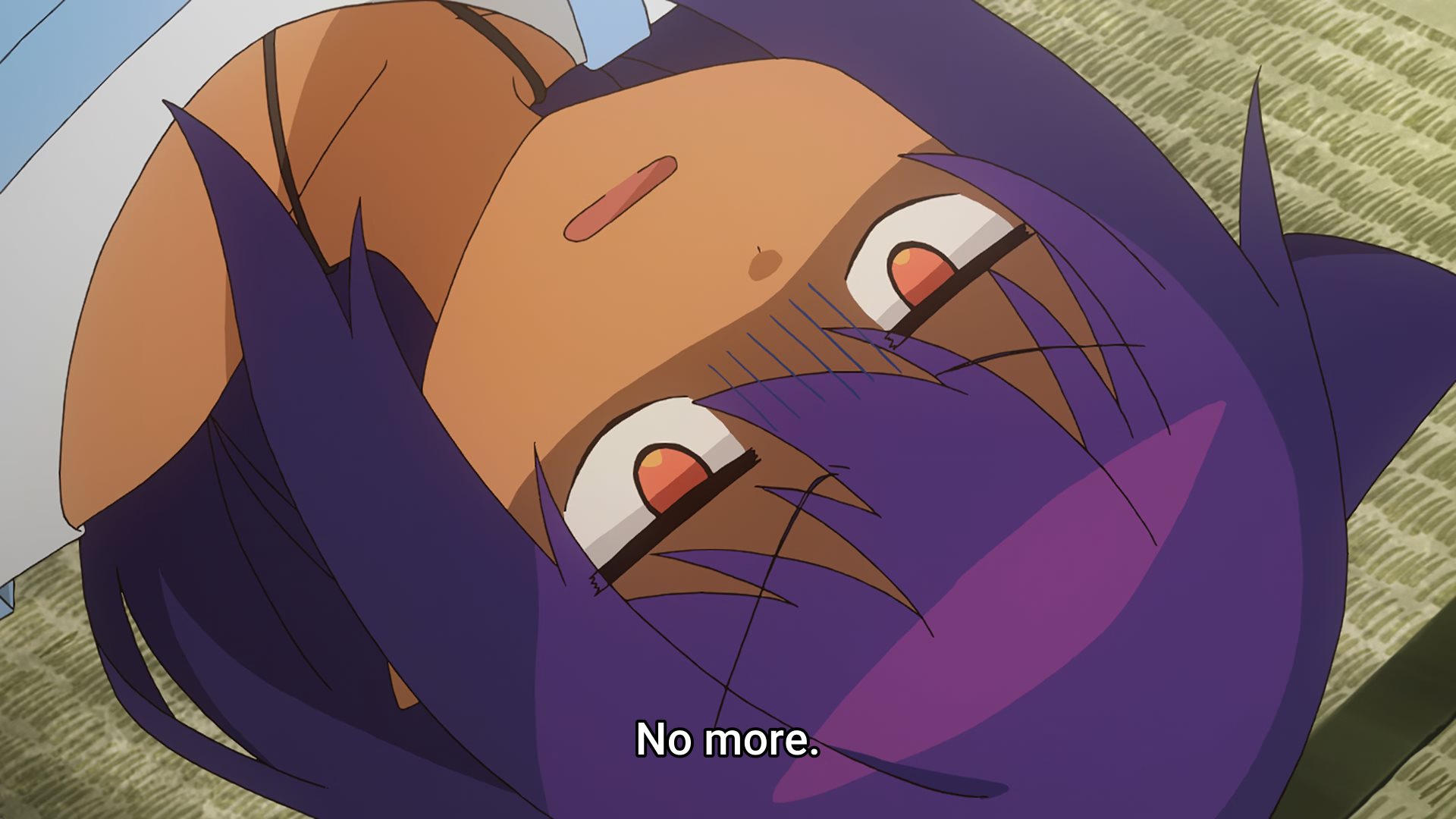 >Panko only has a one piece dark blue and white swimsuit that she wears. IT's almost like a school swimsuit