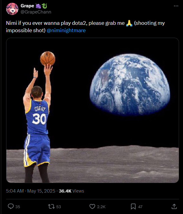 Nimi desperately collabing with whos actually makes her a debuff herself. Saba having collabs with Nimi would now be a bad look compared to someone like Lime.