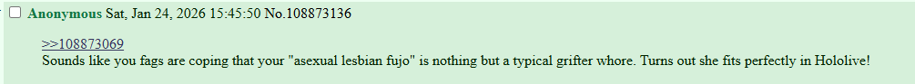 Dooby is so fucking based for bullying this leeching griftrat out of Saba's "circle". Kaniki even got the hint and refuse to watch her even when Saba directly raids the green grifter.