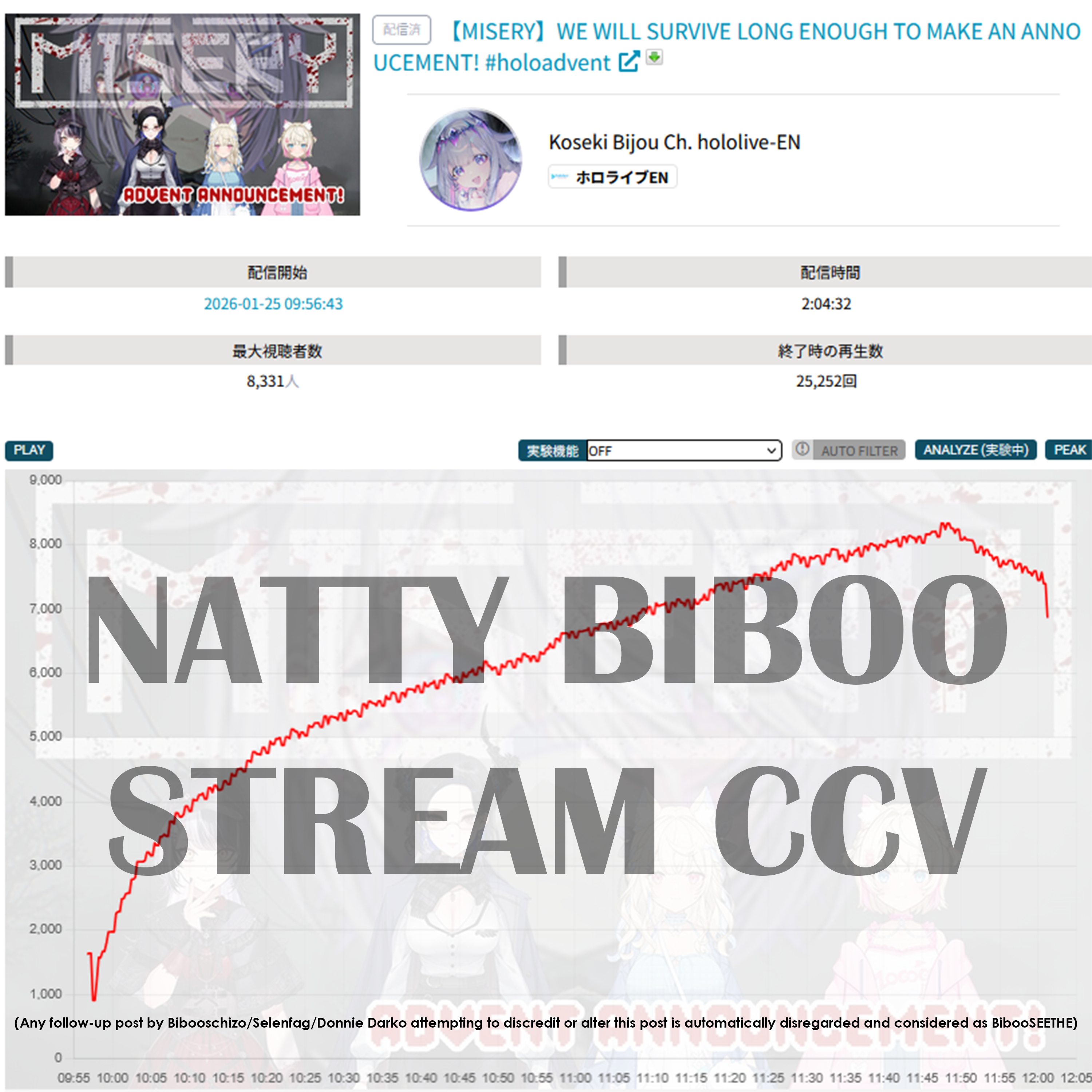 If you bot a streamer from 5k viewers to 10–15k, it won’t be noticeable. In fact, it might boost their popularity because they already have enough real viewers who engage with the stream and on social media, especially since VTuber audiences are very active. The new botted numbers will attract more viewers and, in turn, more potential subscribers. Do this for years and you’ll be 1st army.