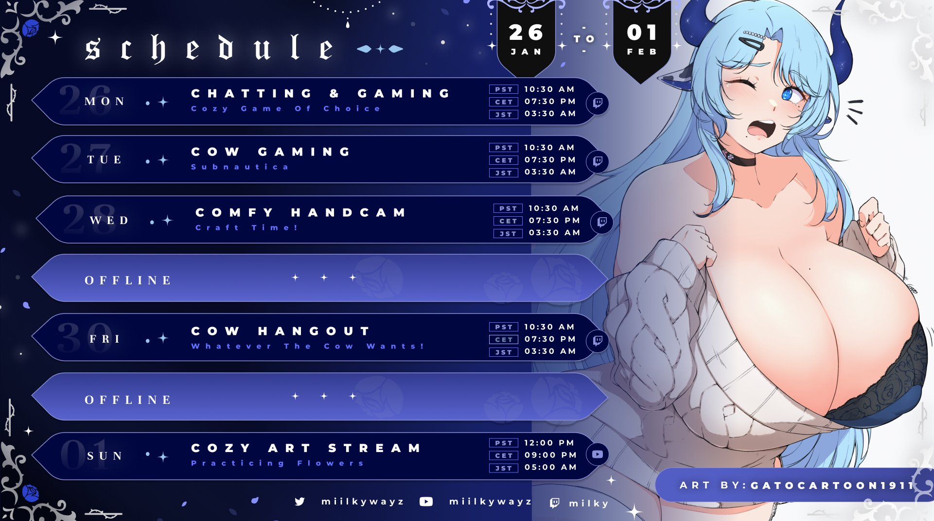Looking Edition >What is /lig/?/lig/ is a thread for viewers to find, share, and discuss indie vtubers who have on average 500 viewers or more.>Why /lig/?Large indie vtubers have more net fans, but they are outnumbered by 2views by the thousands. This is a thread for the VIP, regardless of what language they stream on.>Can I shill my 499view oshi here?Considering averages fluctuate widely, all the way down to 100 is reasonable. The minimal requirement however is being Twitch partner or the YouTube equivalent in numbers.>Wait isn't that one a corpo?/lig/ is a thread for chuubas of a decent size who aren't defined by their corporate branding, either due to the small size of the corporation or the independence and lack of oversight granted to the talents>/lig/ Numbershttps://lignumbers.neocities.org/>Twitch Clips Guidehttps://pastelink.net/34vd5>VOD Archival Guidehttps://rentry.org/Vod_Archival_Guide>/lig/ VOD Archivehttps://rentry.org/Indie_Vod_Archives_lig>Koikatsu cardshttps://mega.nz/folder/JYtkXJwL#07gAQCQqI_9FsmX9oQJKSA>/lig/ Wheel of Nameshttps://wheelofnames.com/5jh-93j>Tiermakerhttps://tiermaker.com/create/-lig--16586688-3>/lig/ Chuuba Birthday Calendar (WIP)https://www.canva.com/design/DAE-XgWodVg/ofLz4QC1yPPQ4T6TTAE0fw/edit?utm_content=DAE-XgWodVg>Upcoming BirthdaysFebruary 4th - Matara KanFebruary 5th - Bodega RatFebruary 9th - Meat & wwParasiFebruary 13th - KokonutsFebruary 14th - ReiyuguiguiFebruary 15th - SaaFebruary 18th - Moon JellyFebruary 22nd - HinaBoBinaFebruary 24th - SnuffyFebruary 27th - AsariMarch 6th - Lucy Pyre>OC material for the OPhttps://mega.nz/folder/IIVD1IaJ#cfsRhWdJvzneIoG8HZUPuw>/lig/booruhttps://ligbooru.moe/>Duckshttps://www.twitch.tv/dashducks (embed)Other useful threads:>>>/vt//big/>>>/vt//corpo/>>>/vt//choc/>>>/vt//flip/>>>/vt//haha/>>>/vt//indie/>>>/vt//mint/>>>/vt//swarm/>>>/vt//vrt/>>>/vt//xvsj+/Previous Thread: >>108888399