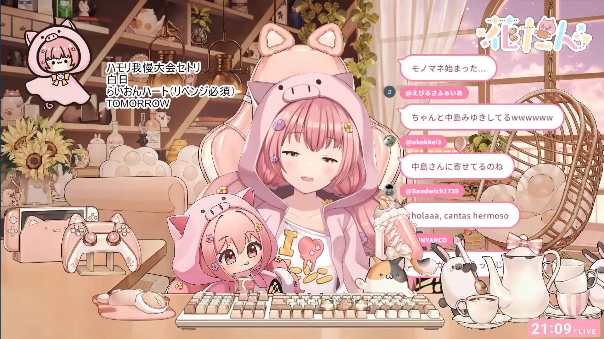 Song Frames and Special EventsTakanashi Yutoha 600 likes endurance in 4 hourshttps://www.youtube.com/watch?v=mRnzy3NM1RsFukumaki Yukahttps://www.youtube.com/watch?v=vq8uhEShP_MHizuki Hina 11,111 subs flute endurancehttps://www.youtube.com/watch?v=AZpJf0h5sNEKokone Muiruhttps://www.youtube.com/watch?v=AemMLCpgtkkSuzukaze Shitorahttps://www.youtube.com/watch?v=Il_DmvU1ET4Uten Hiyorihttps://www.youtube.com/watch?v=kvD3eUCFZNkFelicia 165 greetings endurancehttps://www.youtube.com/watch?v=GRqJTXzLJiwMissed Kasukane earlier but seeing Nanashiku promoting her a little more after Nemo graduation announcement which is expected...