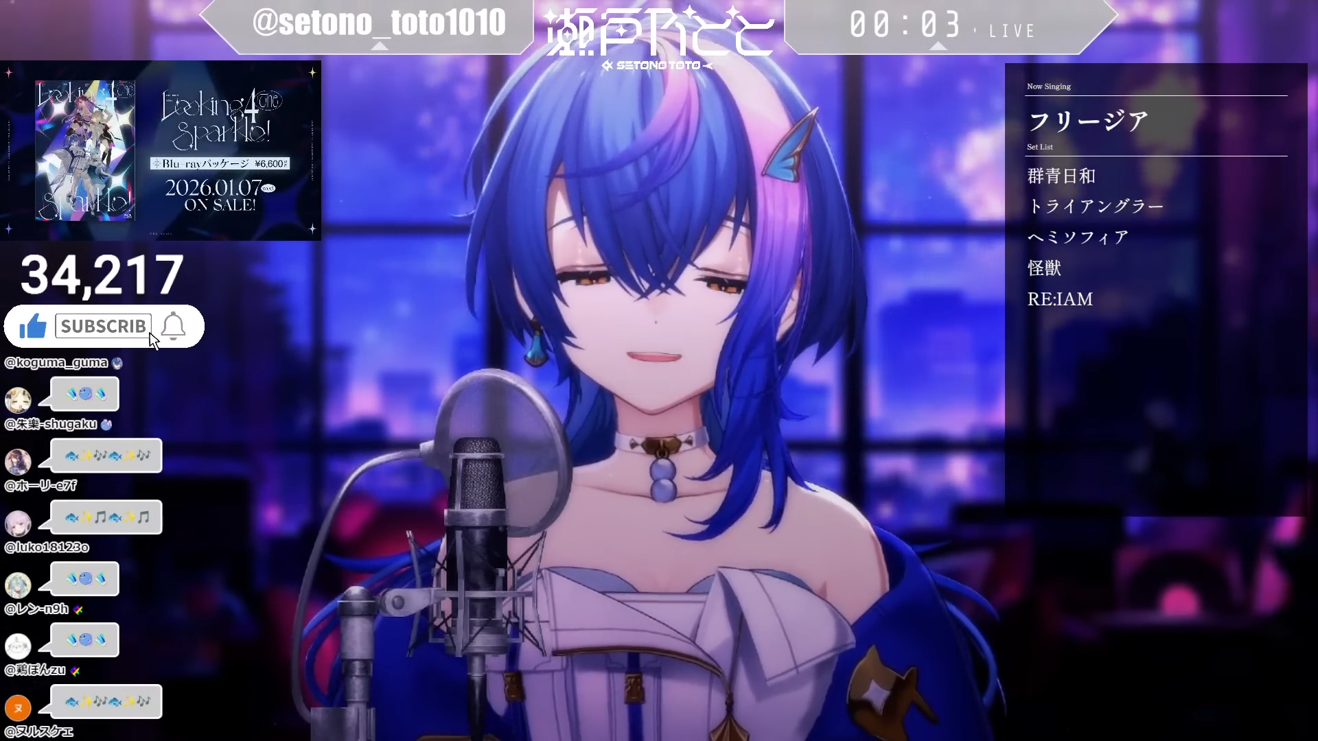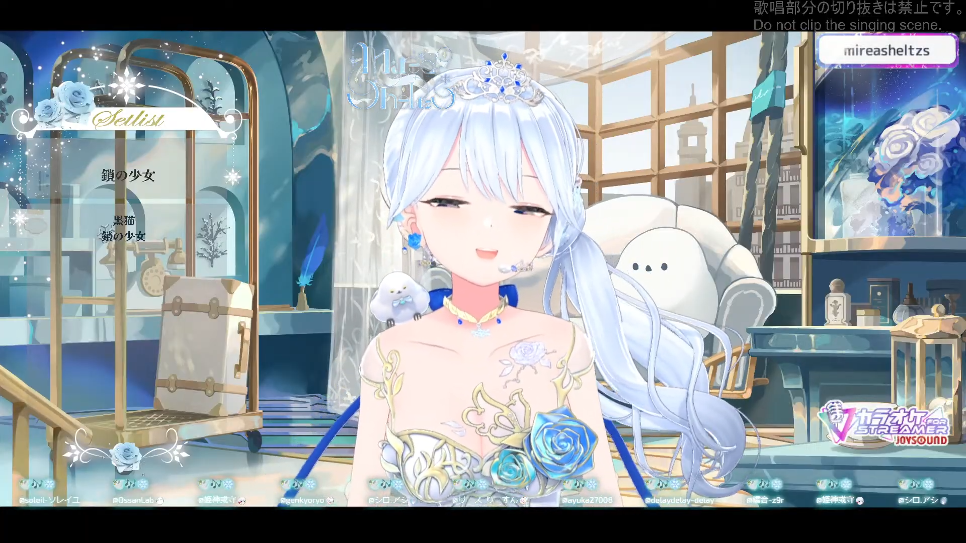 Song Frames and Special EventsRyushenhttps://www.youtube.com/watch?v=H9VxaROuVIYMissed Shioriha Ruri 400K celebration karaoke...Usuwa Suuhttps://www.youtube.com/watch?v=Ki_lumbpXRUAmane Amuhttps://www.youtube.com/watch?v=E7ZGAKOf0ncOtohane Larahttps://www.youtube.com/watch?v=kuT1HVnwsJUTokiwa Kaname x Eda Kyoukahttps://www.youtube.com/watch?v=vGCEsEjog-IKurage Konhttps://www.youtube.com/watch?v=Fv000xe_Al0NiBOSHIhttps://www.youtube.com/watch?v=50xE7GUj1fQAnjoya Riahttps://www.youtube.com/watch?v=rNWF7N-IHHs