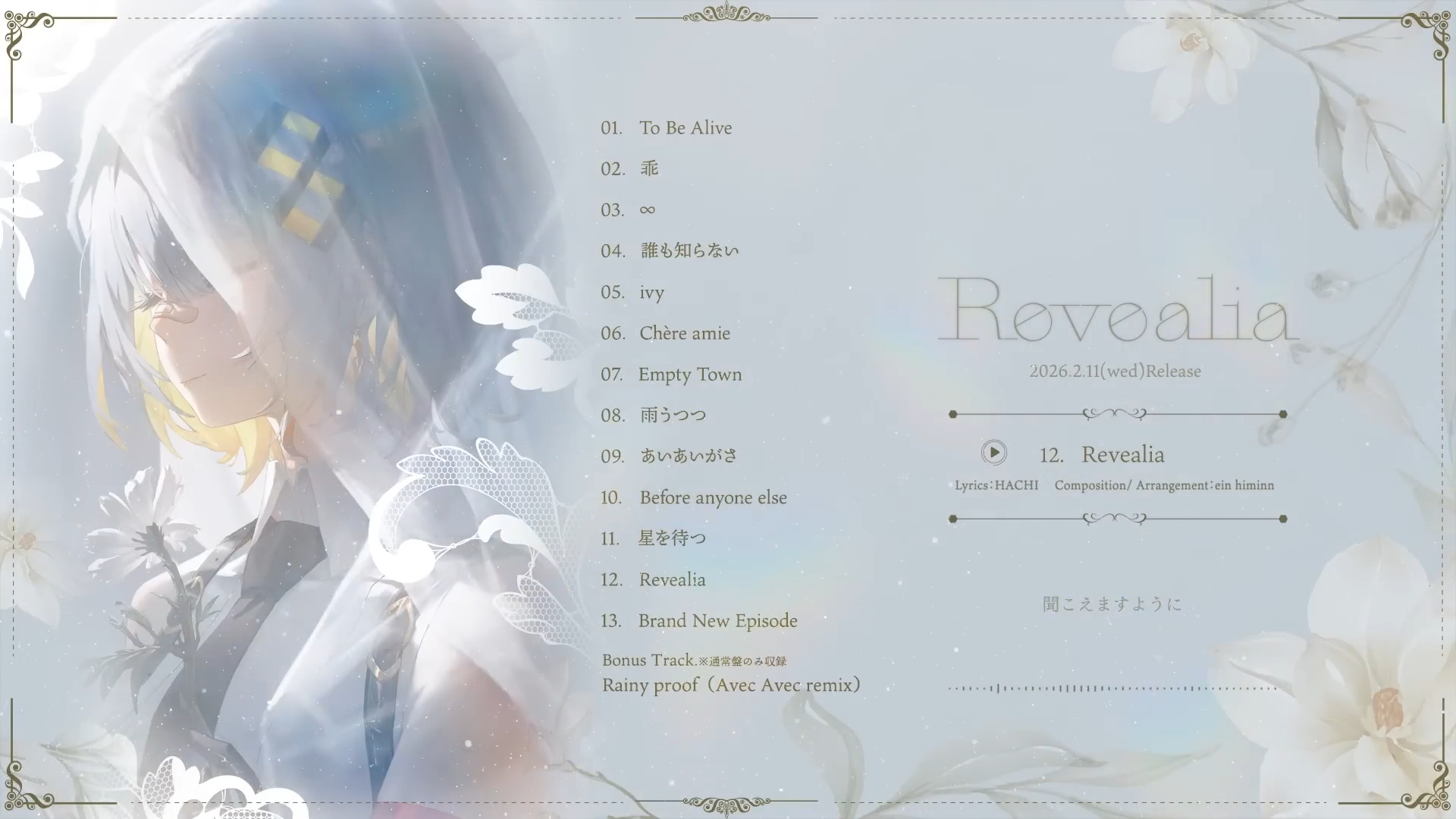 HACHI 4th ALBUM 『Revealia』-XFD- https://youtu.be/JCh_TXOTO1o