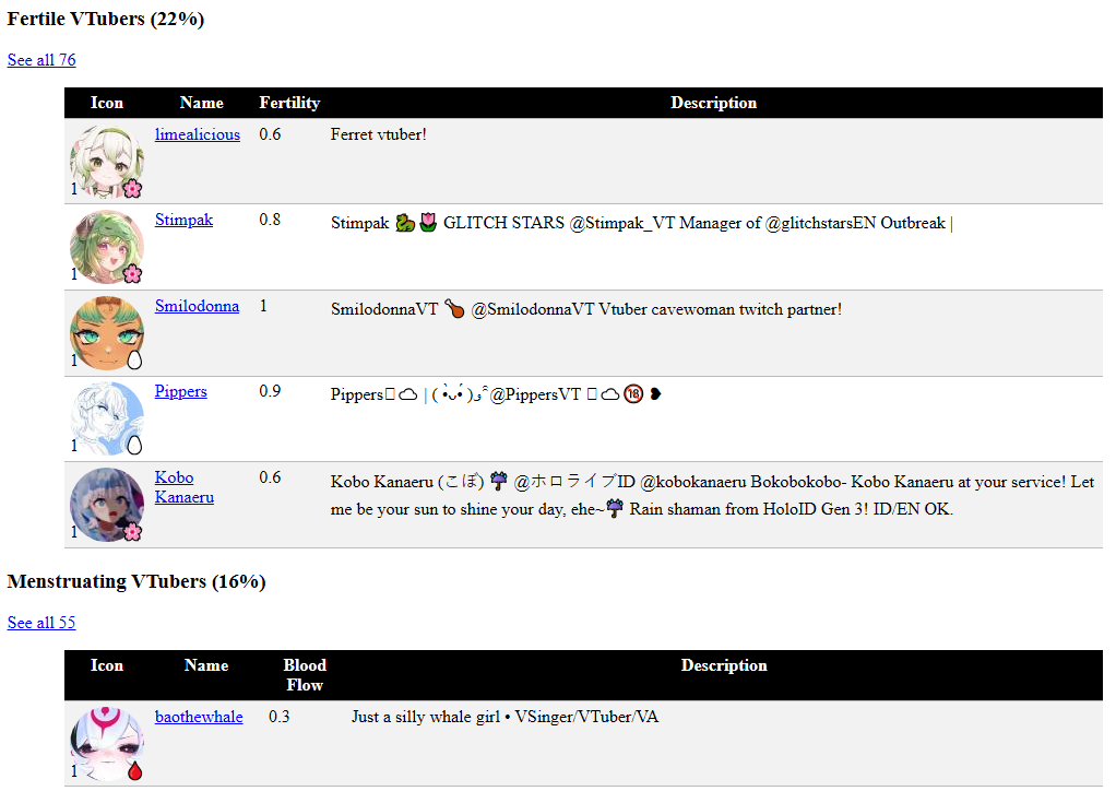 >>108933457>it has percentages for ovulating vtubers and fertile vtubersReally guys? Really?