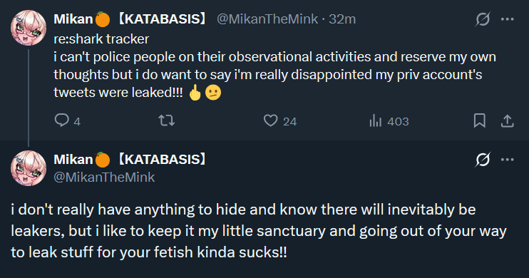 >>108943661coqui, meat, olivia, callie, isaa, vivi, and snuffy all have both a personal manager/agent unaffiliated with 3am and then the 3am manager. this is common place in most entertainment industries as the different managers handle different things.