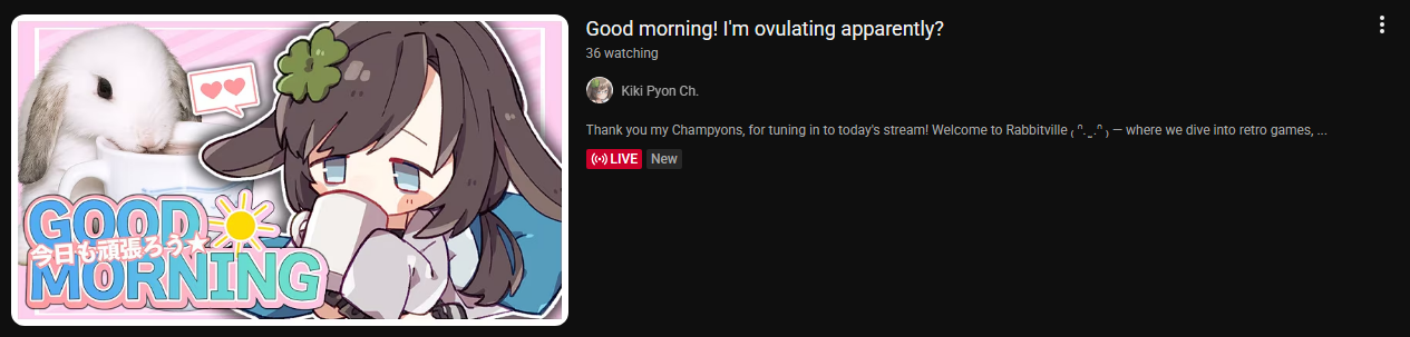 Open Up Edition >What is /lig/?/lig/ is a thread for viewers to find, share, and discuss indie vtubers who have on average 500 viewers or more.>Why /lig/?Large indie vtubers have more net fans, but they are outnumbered by 2views by the thousands. This is a thread for the VIP, regardless of what language they stream on.>Can I shill my 499view oshi here?Considering averages fluctuate widely, all the way down to 100 is reasonable. The minimal requirement however is being Twitch partner or the YouTube equivalent in numbers.>Wait isn't that one a corpo?/lig/ is a thread for chuubas of a decent size who aren't defined by their corporate branding, either due to the small size of the corporation or the independence and lack of oversight granted to the talents>/lig/ Numbershttps://lignumbers.neocities.org/>Twitch Clips Guidehttps://pastelink.net/34vd5>VOD Archival Guidehttps://rentry.org/Vod_Archival_Guide>/lig/ VOD Archivehttps://rentry.org/Indie_Vod_Archives_lig>Koikatsu cardshttps://mega.nz/folder/JYtkXJwL#07gAQCQqI_9FsmX9oQJKSA>/lig/ Wheel of Nameshttps://wheelofnames.com/5jh-93j>Tiermakerhttps://tiermaker.com/create/-lig--16586688-3>/lig/ Chuuba Birthday Calendar (WIP)https://www.canva.com/design/DAE-XgWodVg/ofLz4QC1yPPQ4T6TTAE0fw/edit?utm_content=DAE-XgWodVg>Upcoming BirthdaysFebruary 4th - Matara KanFebruary 5th - Bodega RatFebruary 9th - Meat & wwParasiFebruary 13th - KokonutsFebruary 14th - ReiyuguiguiFebruary 15th - SaaFebruary 18th - Moon JellyFebruary 22nd - HinaBoBinaFebruary 24th - SnuffyFebruary 27th - AsariMarch 6th - Lucy Pyre>OC material for the OPhttps://mega.nz/folder/IIVD1IaJ#cfsRhWdJvzneIoG8HZUPuw>/lig/booruhttps://ligbooru.moe/>Duckshttps://www.twitch.tv/dashducks (embed) (embed) (embed) (embed)Other useful threads:>>>/vt//big/>>>/vt//corpo/>>>/vt//choc/>>>/vt//flip/>>>/vt//haha/>>>/vt//indie/>>>/vt//mint/>>>/vt//swarm/>>>/vt//vrt/>>>/vt//xvsj+/Previous Thread: >>108939004