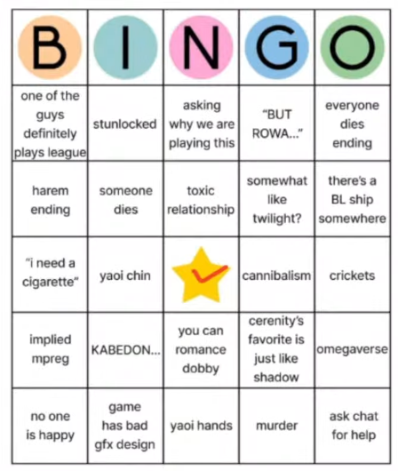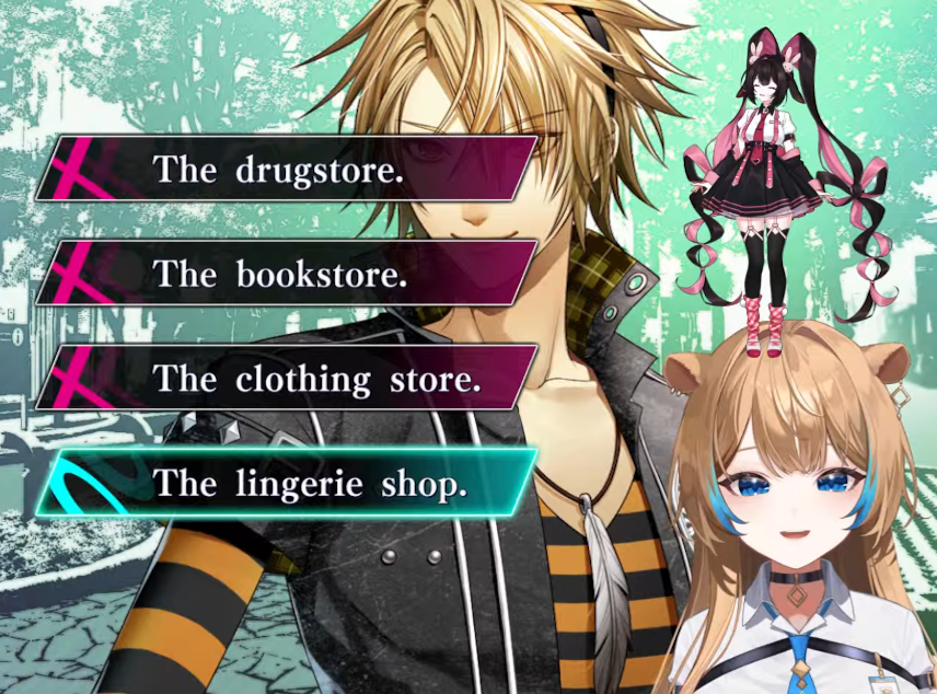 https://www.youtube.com/watch?v=DL0GH9aMacc Cerenity and Rowa are playing an otome VN