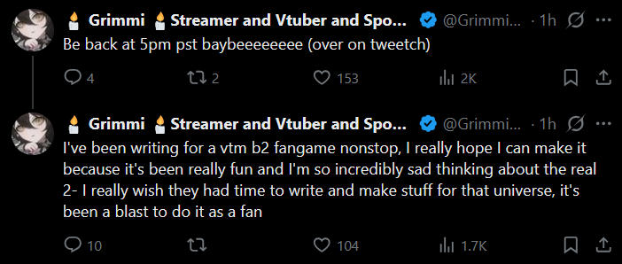 Grimmi is making a VTMB2 fan game? Like one of those text adventures like Night Road?