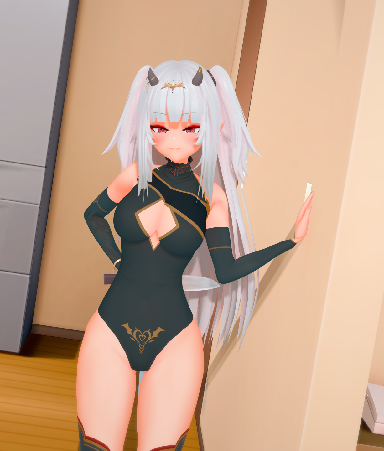 >>108949276her previous model is kinda just a fat chick in regular ass clothes (which is nice), this one is cooler because it has a proper theme. and also because it canonically has a cock