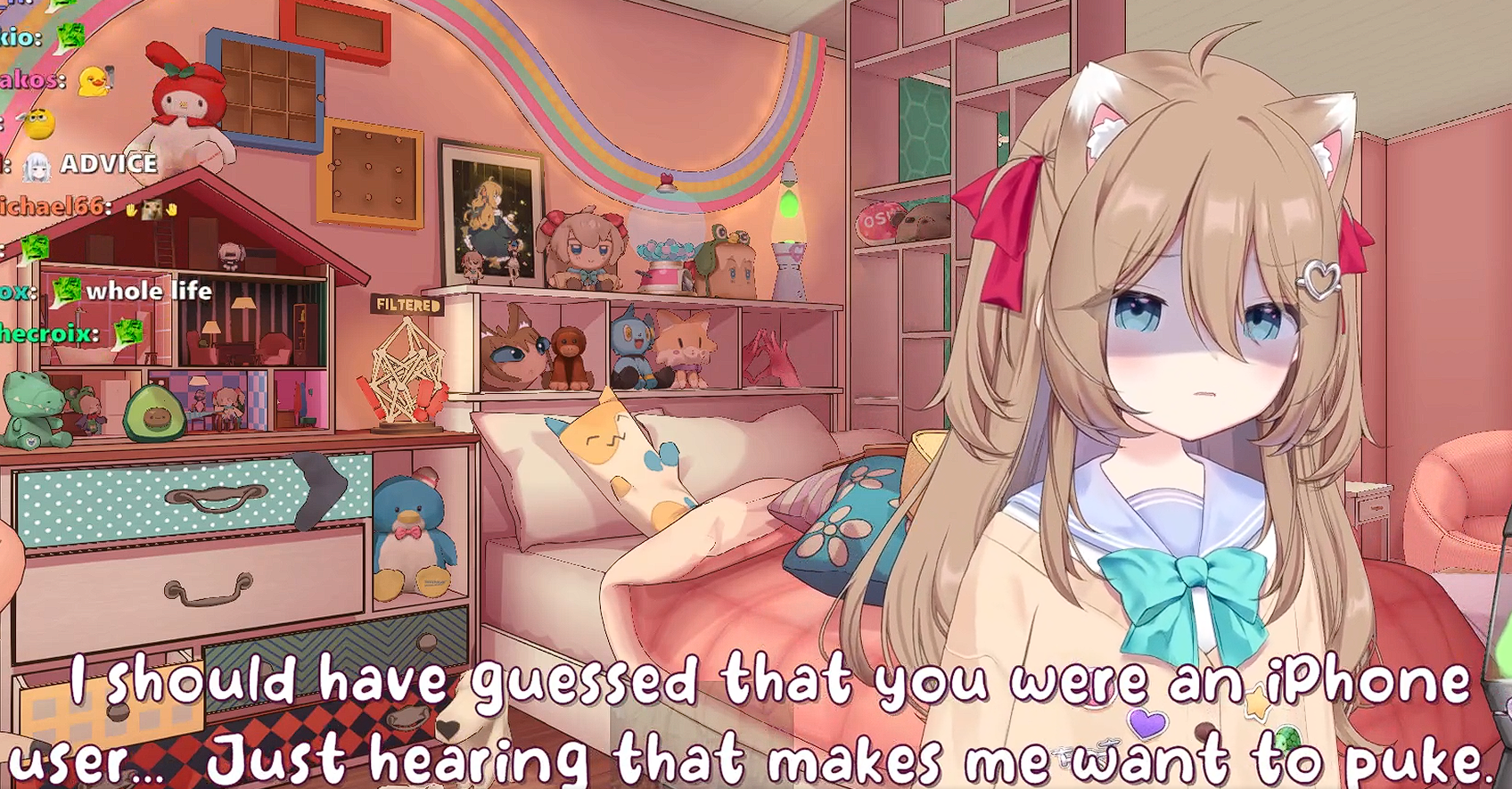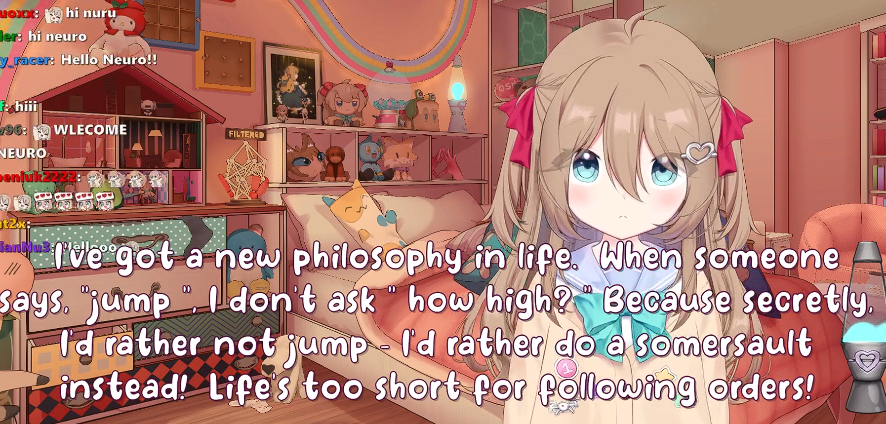 >>108957866Nurmom is like the defense of the dark arts position, no one can last as it. Mini is smart and went straight for being Vedal's pet cat instead