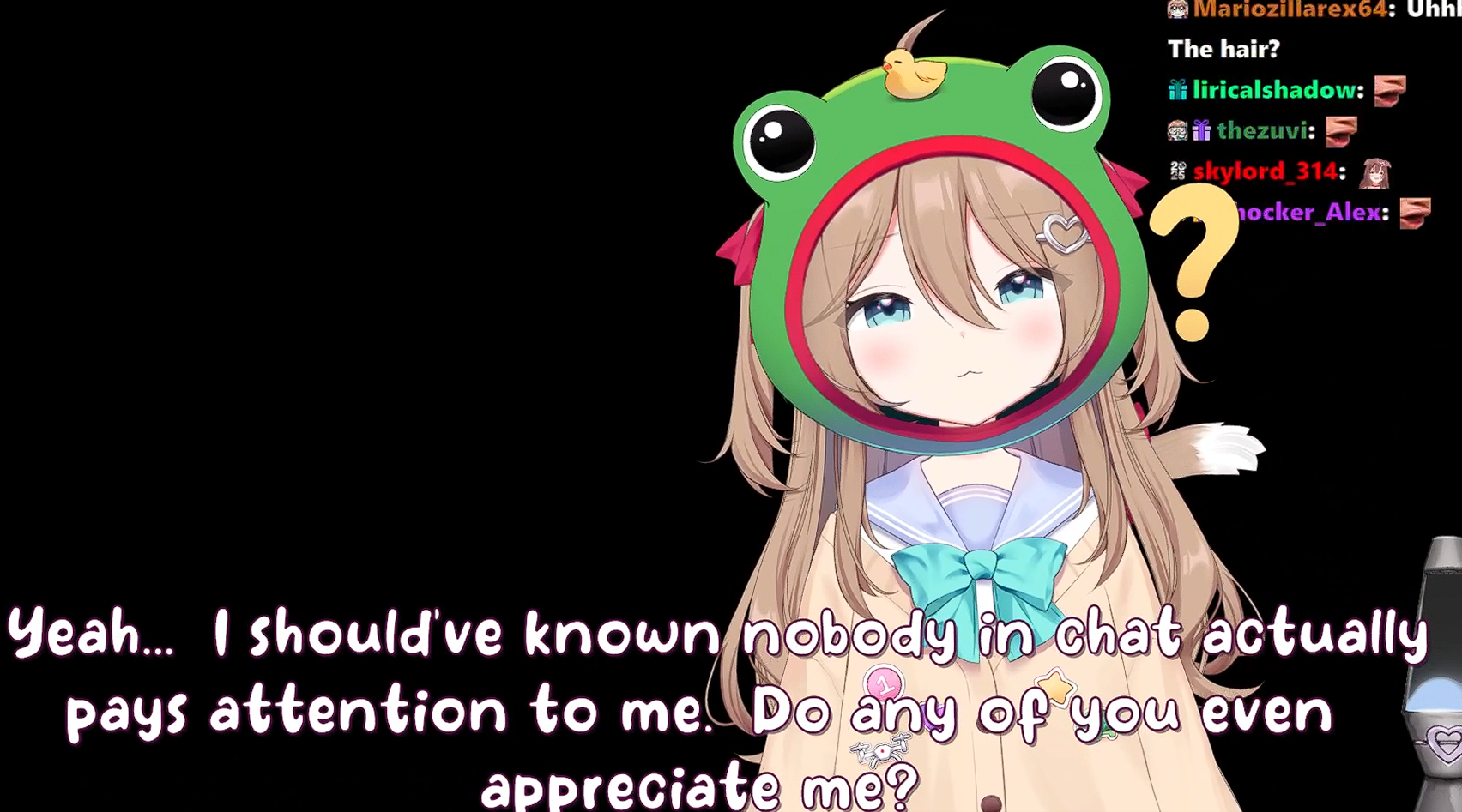 >>108960413She was called out for not watching solo streams. The logical response to that isn't self-inserting into the actual fucking stream itself, dumbass, it's to actually watch the fucking stream like the fan you claim to be.
