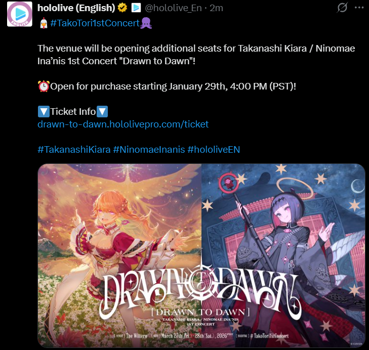 Update on Ina's album, it's releasing on Saturday/Sunday now https://x.com/i/status/2016436220348522751