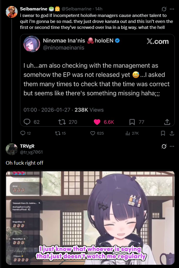 You fools, you didn't get it when she did butler RP? She's meant to be the girl prince that Ao couldn't! If, IF she can tap the market, she can really bring in the femtomos and thats good for you Otomo breathren. Trust the plan. Get cute fangirls at FES. Weren't there a couple Ruffians now who've gotten their SOs amongst Holofangirls? The future is NOW.