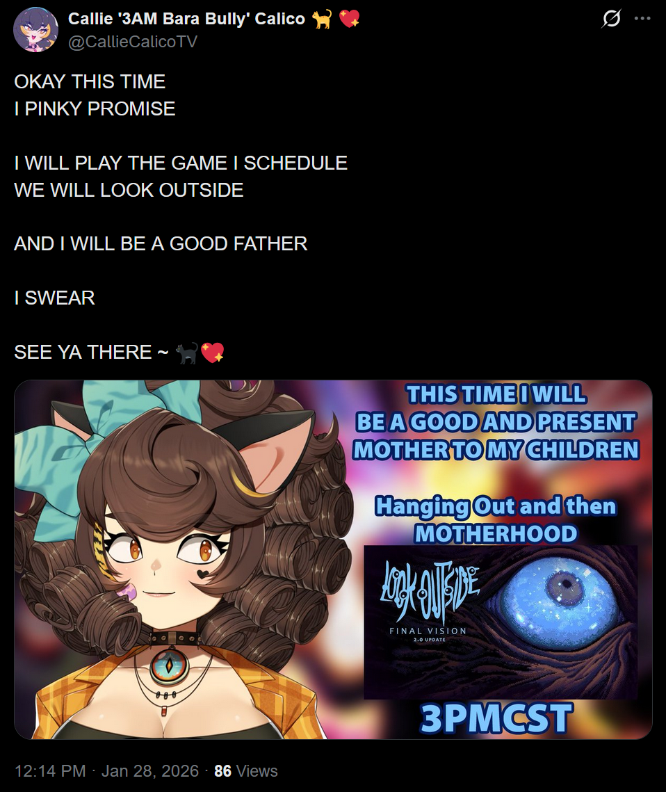 Eughdition >What is /lig/?/lig/ is a thread for viewers to find, share, and discuss indie vtubers who have on average 500 viewers or more.>Why /lig/?Large indie vtubers have more net fans, but they are outnumbered by 2views by the thousands. This is a thread for the VIP, regardless of what language they stream on.>Can I shill my 499view oshi here?Considering averages fluctuate widely, all the way down to 100 is reasonable. The minimal requirement however is being Twitch partner or the YouTube equivalent in numbers.>Wait isn't that one a corpo?/lig/ is a thread for chuubas of a decent size who aren't defined by their corporate branding, either due to the small size of the corporation or the independence and lack of oversight granted to the talents>/lig/ Numbershttps://lignumbers.neocities.org/>Twitch Clips Guidehttps://pastelink.net/34vd5>VOD Archival Guidehttps://rentry.org/Vod_Archival_Guide>/lig/ VOD Archivehttps://rentry.org/Indie_Vod_Archives_lig>Koikatsu cardshttps://mega.nz/folder/JYtkXJwL#07gAQCQqI_9FsmX9oQJKSA>/lig/ Wheel of Nameshttps://wheelofnames.com/5jh-93j>Tiermakerhttps://tiermaker.com/create/-lig--16586688-3>/lig/ Chuuba Birthday Calendar (WIP)https://www.canva.com/design/DAE-XgWodVg/ofLz4QC1yPPQ4T6TTAE0fw/edit?utm_content=DAE-XgWodVg>Upcoming BirthdaysFebruary 4th - Matara KanFebruary 5th - Bodega RatFebruary 9th - Meat & wwParasiFebruary 13th - KokonutsFebruary 14th - ReiyuguiguiFebruary 15th - SaaFebruary 18th - Moon JellyFebruary 22nd - HinaBoBinaFebruary 24th - SnuffyFebruary 27th - AsariMarch 6th - Lucy Pyre>OC material for the OPhttps://mega.nz/folder/IIVD1IaJ#cfsRhWdJvzneIoG8HZUPuw>/lig/booruhttps://ligbooru.moe/>Duckshttps://www.twitch.tv/dashducks (embed) (embed) (embed) (embed)Other useful threads:>>>/vt//big/>>>/vt//corpo/>>>/vt//choc/>>>/vt//flip/>>>/vt//haha/>>>/vt//indie/>>>/vt//mint/>>>/vt//swarm/>>>/vt//vrt/>>>/vt//xvsj+/Previous Thread: >>108961850
