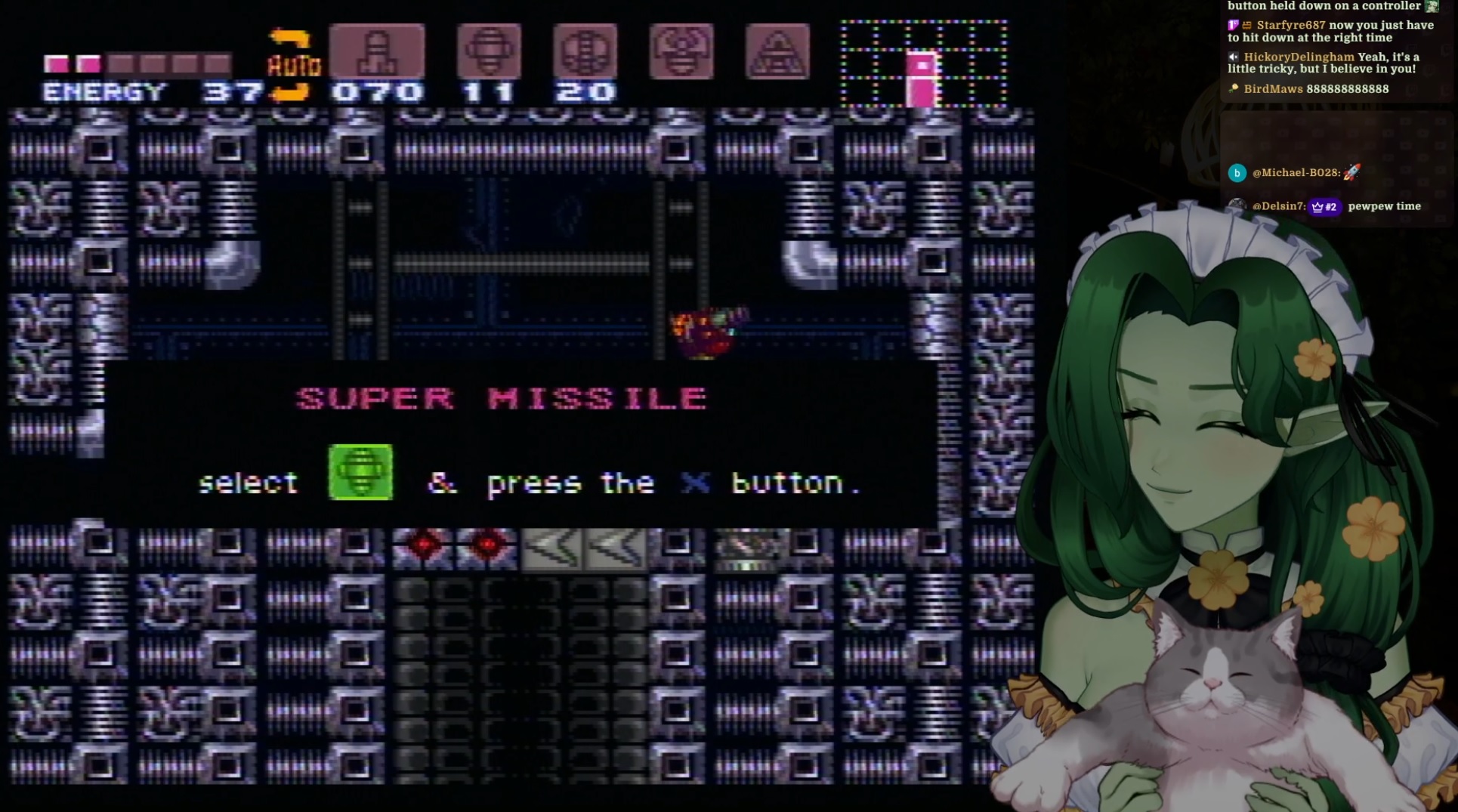 >Primrose playing read hardware super metroid for her 1st playthrough>tapes down the sprint button>accidentally tapes down start button too insteadpon retro kino