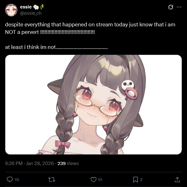 >>108973350my new years resolution was to quit watching vtubers entirelyi don't want to say how it's going