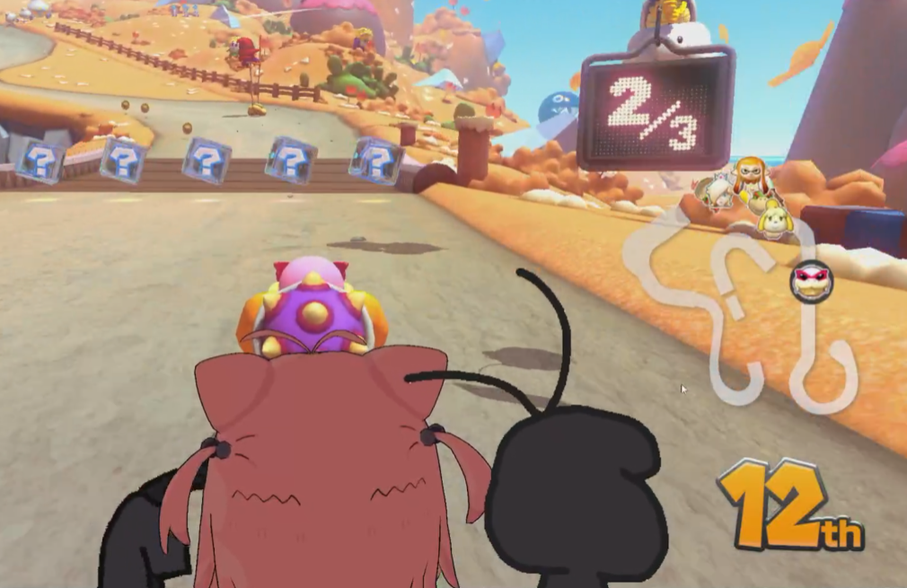 >>108979679Wrapping my arms around Nino so I don't fall off the kart and sneaking in a few rubs of her flat chest on bumps and turns