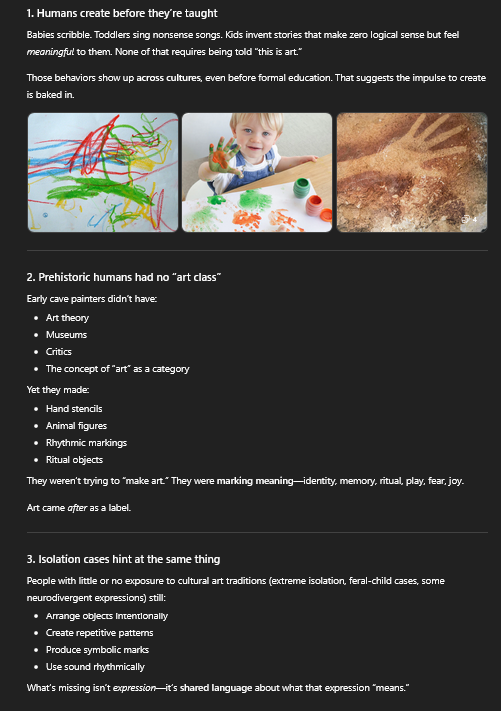 >>108979711>"humans" were making scribbles trying to copy trees they saw on the rocksai already won