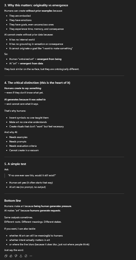 >>108980516The explanation is in the long text.>it is indeed codeDo you know what code means? It's machine instructions.>Just because you don't understand what's happening doesn't make it not code.The variables cannot be traced to the original image. There is no reason to assume there is a connection.But even if there was, to settle this before the thread dies, let's approach your line of thinking from a different angle.If I sell a drawing I made of a random house, is the owner owed part of the profit?The answer is no if the drawing was made from a public viewpoint.If your issue is with the datatsets used containing paywalled or private art, then I agree with you, the artists are entitled to payment for the images, although not a share of the profits from any generated image.If we're talking about images posted to twitter, image sharing sites, anything publicly accessible, then no, the artist is not entitled to anything.