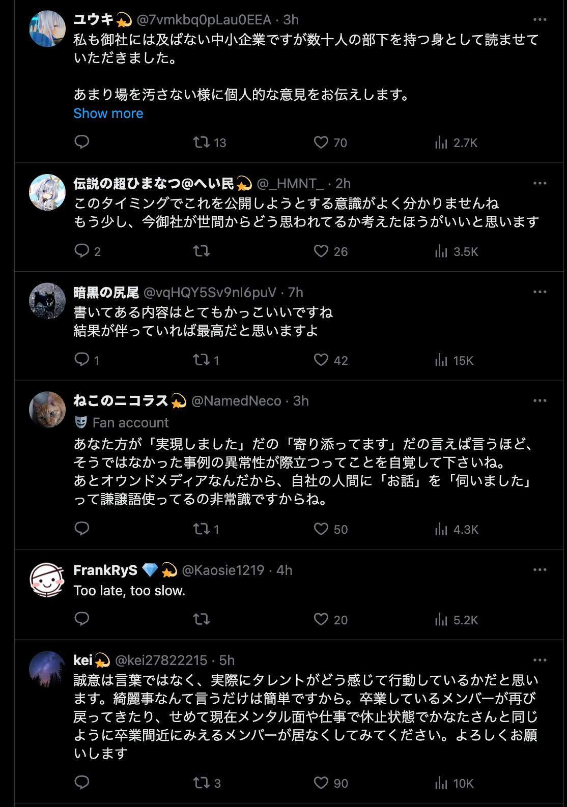>>108983688Cover deserved that roasting after posting an article that fellates management right after they did two consecutive fuckups and while Kanata's graduation is still fresh in the fandom's mind.