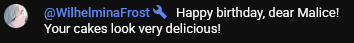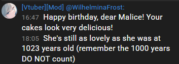 Wilhelmina is in Malice's chat!