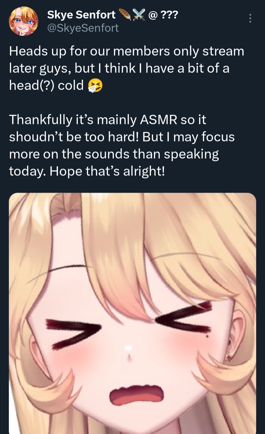>>109000413she just vtweets on her priv account all day from what I'm aware