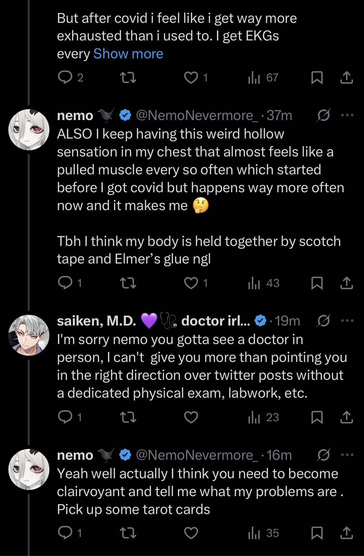 >People must have me blocked because I'm a doctor, and not because I'm a sexpest who inserts himself into every girls replies