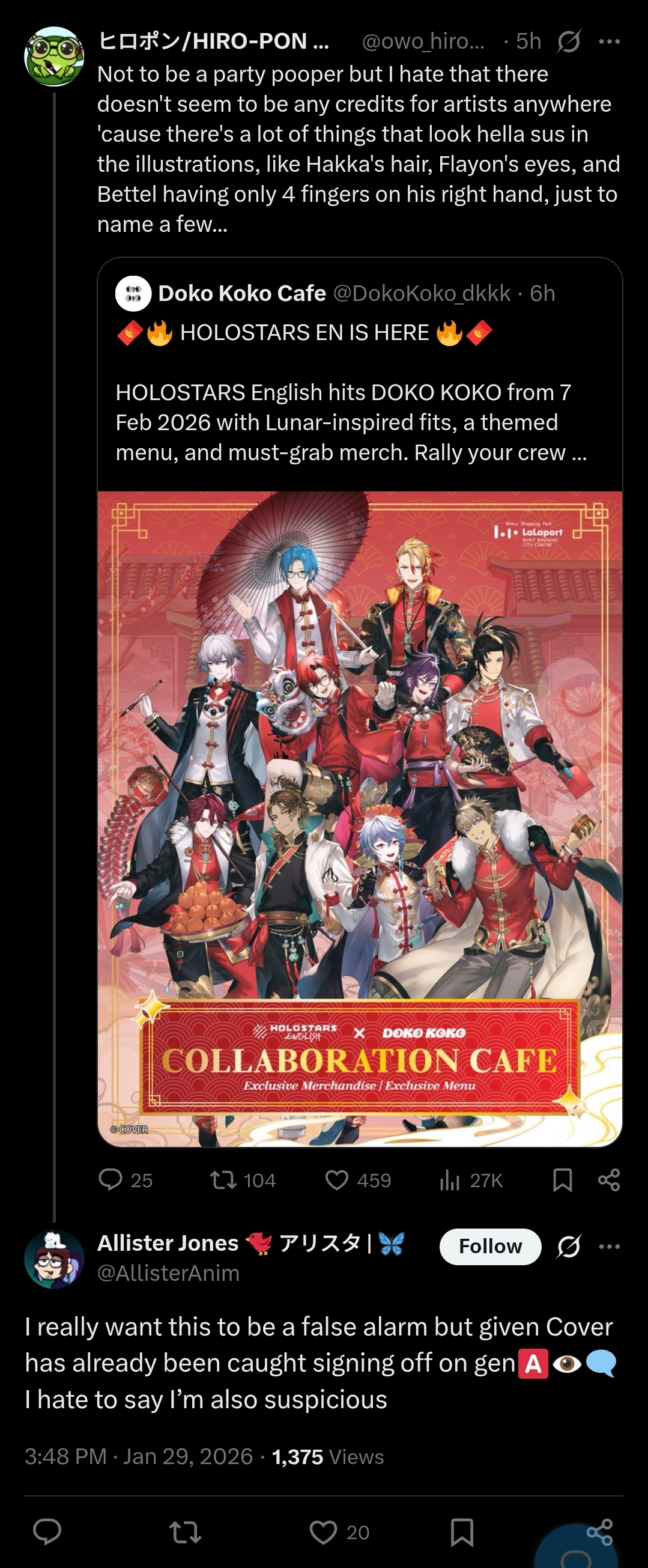 People then ask why homos don't get any shit. https://x.com/owo_hiropon/status/2016828702500262031?s=20Reminder advent and first army also had the same collab with the same restaurant and nobody had issues at that time.