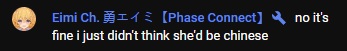 ▼ Phase Connect LinksOfficial Website: https://phase-connect.comOfficial Schedule: https://schedule.phase-connect.comOfficial Twitter: https://x.com/PhaseConnect | https://x.com/PhaseConnectJPOfficial Character References: https://rentry.org/pcgreferencesOfficial Twitch Archive Channels: https://rentry.org/pcgtwitcharchiveUnofficial Phase Connect Archives: https://rentry.org/pcgunofficialarchive––––––––––––––––––––––––––––––––––◆【Lia】https://x.com/rinkouashelia | https://youtube.com/RinkouAshelia | https://twitch.tv/asheliarinkou◆【Utatane Nasa】転寝ナサ (JP) https://x.com/UtataneNasa | https://youtube.com/UtataneNasa | https://twitch.tv/utatanenasa◆【Hakushika Iori】白鹿いおり (JP + EN) https://x.com/hakushikaiori | https://youtube.com/HakushikaIori | https://twitch.tv/iorihakushika◆【Fujikura Uruka】https://x.com/fujikurauruka | https://youtube.com/FujikuraUruka | https://twitch.tv/fujikurauruka◆【Shisui Michiru】紫翠みちる (JP) https://x.com/shisuimichiru | https://youtube.com/ShisuiMichiru | https://twitch.tv/michiru_shisui◆【Tenma Maemi】https://x.com/tenmamaemi | https://youtube.com/TenmaMaemi | https://twitch.tv/tenma◆【Pipkin Pippa】https://x.com/pipkinpippa | https://youtube.com/PipkinPippa | https://twitch.tv/pippa––––––––––––––––––––––––––––––––––◆【Kaneko Lumi】https://x.com/kaneko_lumi | https://youtube.com/KanekoLumi | https://twitch.tv/kanekolumi◆【Fuura Yuri】[Terminated] https://x.com/AmarisYuri | Archive: https://youtube.com/@TheNationalFuuraYuriArchive◆【Dizzy Dokuro】https://x.com/dizzydokuro | https://youtube.com/@dizzydokuro | https://twitch.tv/dizzydokuro◆【Jelly Hoshiumi】https://x.com/jellyhoshiumi | https://youtube.com/@jellyhoshiumi | https://twitch.tv/jellyhoshiumi◆【Ember Amane】https://x.com/emberamane | https://youtube.com/@EmberAmane | https://twitch.tv/emberamane◆【Clio Aite】https://x.com/ClioAite | https://youtube.com/@ClioAite | https://twitch.tv/clioaite◆【MariMari_en】https://x.com/MARIMARI_EN | https://youtube.com/@MARIMARI_EN | https://twitch.tv/marimari_en◆【Eepy Sleepy】https://x.com/EepySleepyCh | https://youtube.com/@EepySleepyCh | https://twitch.tv/EepySleepy––––––––––––––––––––––––––––––––––◆【Remilia Nephys】https://x.com/Remilia_Nephys | https://youtube.com/RemiliaNephys | https://twitch.tv/remilianephys◆【Chisaka Airi】https://x.com/ChisakaAiri | https://youtube.com/ChisakaAiri | https://twitch.tv/chisakaairi◆【Amanogawa Shiina】https://x.com/AmanogawaShiina | https://youtube.com/AmanogawaShiina | https://twitch.tv/amanogawashiina◆【Himemiya Rie】https://x.com/HimemiyaRie | https://youtube.com/HimemiyaRie | https://twitch.tv/himemiyarie◆【Erina Makina】https://x.com/ErinaMakina | https://youtube.com/ErinaMakina | https://twitch.tv/erinamakina◆【Komachi Panko】https://x.com/komachipanko | https://youtube.com/KomachiPanko | https://twitch.tv/komachipanko––––––––––––––––––––––––––––––––––◆【Runie Ruse】https://x.com/RunieRuse | https://youtube.com/@RunieRuse | https://twitch.tv/RunieRuse◆【Eimi Isami】https://x.com/eimiisami | https://youtube.com/@eimiisami | https://twitch.tv/eimiisami◆【Muu Muyu】https://x.com/Muu_Muyu | https://youtube.com/@MuuMuyu | https://twitch.tv/MuuMuyu◆【Hikanari Hina】https://x.com/HikanariHina | https://youtube.com/@HikanariHina | https://twitch.tv/HikanariHina◆【Saya Sairroxs】[Hort] https://x.com/sayasairroxs | https://youtube.com/@sayasairroxs | https://twitch.tv/sayasairroxs––––––––––––––––––––––––––––––––––◆【Kannagi Loki】巫ロキ (JP) https://x.com/kannagiloki | https://youtube.com/@kannagiloki ◆【Kokoromo Memory】恋衣めもり (JP) https://x.com/kokoromomemory | https://youtube.com/@kokoromomemory_ | https://twitch.tv/kokoromomemory◆【Gram Pico】倉夢ぴこ (JP) https://x.com/grampico_ | https://youtube.com/@grampico | https://twitch.tv/grampico◆【Ayase Yuu】絢世ユウ (JP) https://x.com/ayaseyuuu | https://youtube.com/@ayaseyuu | https://twitch.tv/ayaseyuu_◆【Kaminari Clara】歌美鳴クララ (EN + JP) https://x.com/kaminariclara_ | https://youtube.com/@kaminariclara | https://twitch.tv/kaminariclara––––––––––––––––––––––––––––––––––◆【Malice Evermore】https://x.com/MaliceEvermore | https://youtube.com/@maliceevermore | https://twitch.tv/maliceevermore◆【Nitya Nil】https://x.com/Nitya_Nil | https://youtube.com/@Nitya_Nil | https://twitch.tv/nitya_nil◆【Wilhelmina Frost】https://x.com/wilhelminafr0st | https://youtube.com/@wilhelminafrost | https://twitch.tv/wilhelminafrost◆【Bibi Biscuit】https://x.com/BibiBiscuitCh | https://youtube.com/@bibibiscuitch | https://twitch.tv/bibibiscuitch◆【Anya Nyabyss】https://x.com/AnyaNyabyss | https://youtube.com/@AnyaNyabyss | https://twitch.tv/anyanyabyss◆【Sinon Sinfonia】https://x.com/SinonSinfonia | https://youtube.com/@SinonSinfonia | https://twitch.tv/sinonsinfoniaPrevious Thread: >>108988168